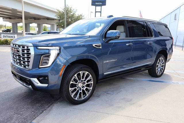 The 2026 GMC Yukon XL Denali offers a luxurious driving experience with a powerful 6.2L V8 engine, advanced safety features, and a spacious interior designed for comfort and convenience. Enjoy features like a panoramic power sunroof, heated and ventilated seats, and a premium GMC Infotainment System with navigation and Google built-in compatibility. The vehicle is equipped with the latest in driver assistance technology, including Super Cruise, Blind Zone Steering Assist, and Enhanced Automatic Emergency Braking. The Downpour Metallic exterior is complemented by a Teak/Light Shale interior, providing a sophisticated look for any family or individual seeking a premium SUV.