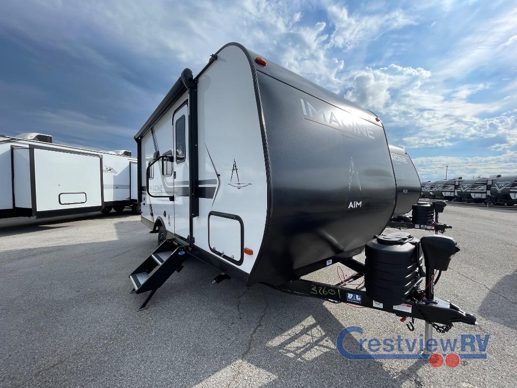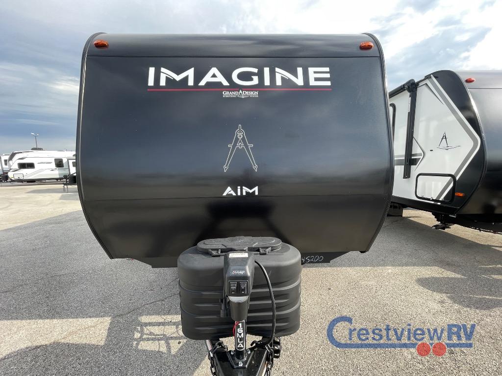 Grand Design Imagine AIM 16MLA travel trailer highlights: Full Rear Bathroom, Queen Bed, Unobstructed Pass-Through Storage, Sofa with Shoe Storage. Pack your bags and head out on a fun camping trip in this travel trailer! The front queen bed offers a comfortable place to sleep at night, as well as the roll-over sleeper sofa slide with shoe storage. You can make meals on the cooktop or in the convection microwave. The full rear bathroom has a walk-in shower with an oversized vanity to easily get ready each day. Outside, you'll find a spray port, an unobstructed pass-thru storage, and an interior/exterior table to use at your convenience. Aim for new destinations in one of these Grand Design Imagine AIM travel trailers! They are constructed to a superior standard with the 4-Seasons Protection Package that features a heated and enclosed underbelly with suspended tanks, a moisture barrier floor enclosure, a double insulated roof and front wall, and more. There is backup camera prep outside, along with a universal docking station, and a power tongue jack. You are sure to feel at home with residential cabinetry, premium window treatments, residential countertops, and a spacious walk-in shower to name a few comforts. The on-demand tankless water heater is a feature you won't want to camp without and the hi-definition LED TV will ensure you'll never go bored on rainy days. Each model also comes with four AIM packages; the Peace of Mind Package, The Ultimate Power Package, The 4-Season Protection Package, and the Solar Package!