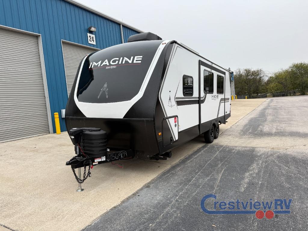 Grand Design Imagine travel trailer 2600RB highlights: Rear Full Bath, Tri-Fold Sofa, U-Shaped Dinette, Outdoor Griddle. Experience the ultimate in comfort and convenience with this luxurious travel trailer. When you enter this trailer, you'll find convenient shoe storage to your right below the wardrobe/pantry. The full rear bathroom has a 30" x 36" shower with skylight for you to rinse off after you come in from an afternoon hike, and you can lounge on the tri-fold sofa or U-shaped dinette with removable ottoman after you are clean. The large slide creates more interior space, so you can cook freely on the three-burner range with oven in the kitchen, also, you can cook on the outside griddle. You'll have a private bedroom that you can retreat to at the end of a long day, and the 60" x 80" queen bed will provide comfort while you sleep. Just imagine leaving the world behind and secluding yourself away with your favorite people in your Grand Design Imagine travel trailer! The Imagine has been designed to enjoy camping and includes a high-capacity furnace, a heated and enclosed underbelly with suspended tanks, a designated heat duct to the subfloor, and a high-density roof insulation with attic vent. You'll have a large panoramic window to let natural lighting in and an adjustable Power Awning with LED Lights for those night gatherings. The exclusive drop-frame pass-through storage compartment is going to allow you to bring along lots of equipment, and the universal docking station is an all-in-one location for utilities and hook-ups. You'll also have oversized tank capacities so that you can fill and empty your tanks less often.
