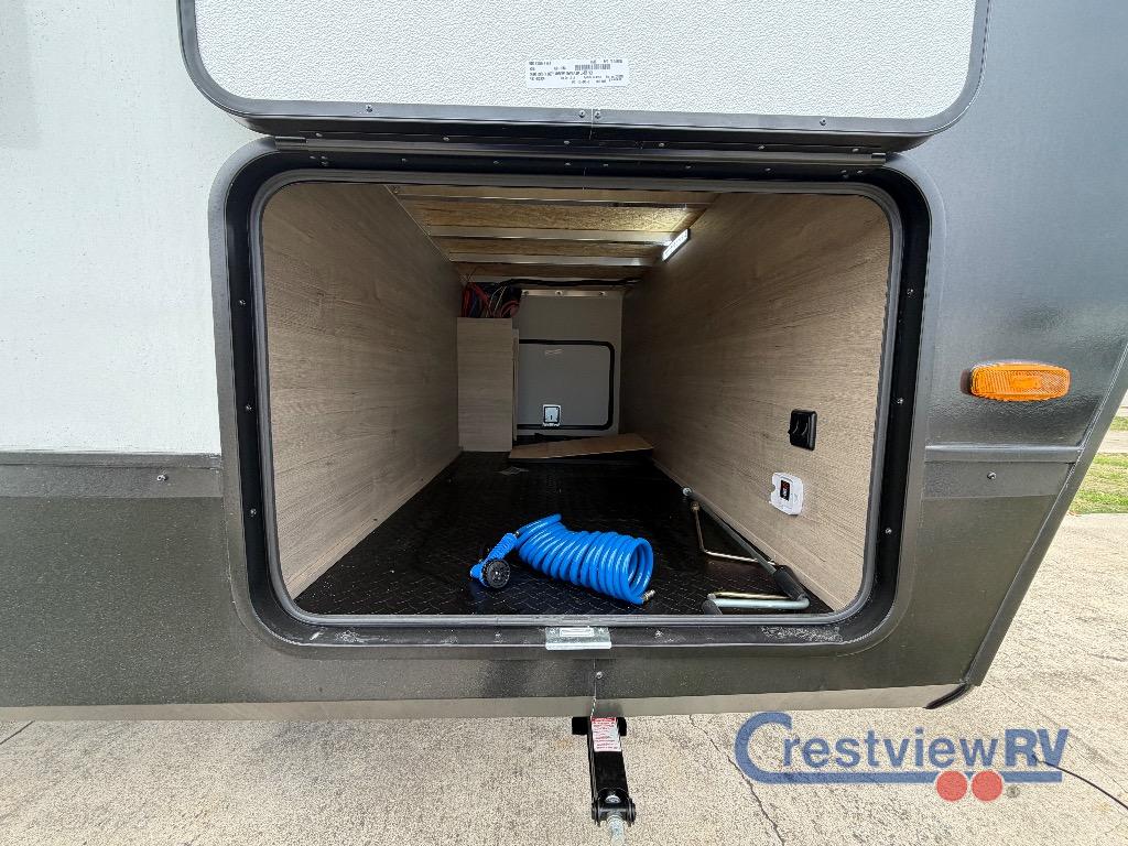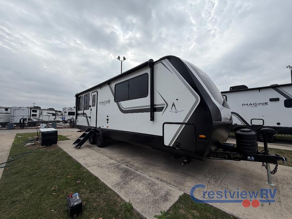 Grand Design Imagine travel trailer 2700BS highlights: Rear Kitchen Walk Through Bathroom Telescoping TV 22" Awning At the front of the 2700BS trailer, you’ll find a spacious full bedroom featuring a 70" x 80" king bed housed in one of two slide outs, offering both generous space and a comfortable night’s rest. The room also includes a wardrobe and dresser, providing ample storage for clothing and essentials. Moving toward the center, the walk-through bathroom boasts a 30" x 36" residential walk-in shower with a skylight, a toilet, and a sink opposite a mirrored medicine cabinet for added convenience and storage. At the rear, the open-concept kitchen and living area make excellent use of the second slide out, which includes cozy theater seating, perfect for dining or relaxing while watching TV. Next to it sits a 10-cu. ft. refrigerator, offering plenty of room for groceries and refreshments. Across the space, the L-shaped kitchen spans the entire rear wall, giving you extensive countertop room for meal prep. Equipped with a three-burner range, oven, microwave, and stainless steel sink, this kitchen allows you to cook in comfort and style without relying on campsite facilities. Just imagine leaving the world behind and secluding yourself away with your favorite people in your Grand Design Imagine travel trailer! The Imagine has been designed to enjoy camping and includes a high-capacity furnace, a heated and enclosed underbelly with suspended tanks, a designated heat duct to the subfloor, and a high-density roof insulation with attic vent. You'll have a large panoramic window to let natural lighting in and an adjustable Power Awning with LED Lights for those night gatherings. The exclusive drop-frame pass-through storage compartment is going to allow you to bring along lots of equipment, and the universal docking station is an all-in-one location for utilities and hook-ups. You'll also have oversized tank capacities so that you can fill and empty your tanks less often.