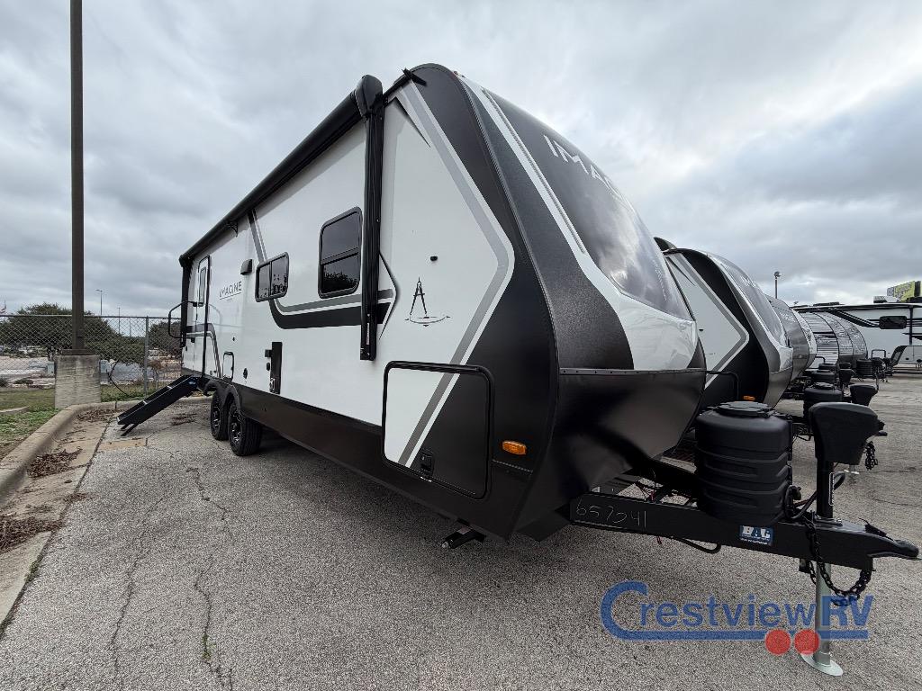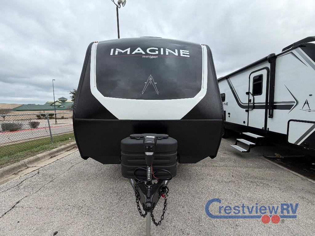 Grand Design Imagine travel trailer 2600RB highlights: Rear Full Bath, Tri-Fold Sofa, U-Shaped Dinette, Outdoor Griddle. Experience the ultimate in comfort and convenience with this luxurious travel trailer. When you enter this trailer, you'll find convenient shoe storage to your right below the wardrobe/pantry. The full rear bathroom has a 30" x 36" shower with skylight for you to rinse off after you come in from an afternoon hike, and you can lounge on the tri-fold sofa or U-shaped dinette with removable ottoman after you are clean. The large slide creates more interior space, so you can cook freely on the three-burner range with oven in the kitchen, also, you can cook on the outside griddle. You'll have a private bedroom that you can retreat to at the end of a long day, and the 60" x 80" queen bed will provide comfort while you sleep. Just imagine leaving the world behind and secluding yourself away with your favorite people in your Grand Design Imagine travel trailer! The Imagine has been designed to enjoy camping and includes a high-capacity furnace, a heated and enclosed underbelly with suspended tanks, a designated heat duct to the subfloor, and a high-density roof insulation with attic vent. You'll have a large panoramic window to let natural lighting in and an adjustable Power Awning with LED Lights for those night gatherings. The exclusive drop-frame pass-through storage compartment is going to allow you to bring along lots of equipment, and the universal docking station is an all-in-one location for utilities and hook-ups. You'll also have oversized tank capacities so that you can fill and empty your tanks less often.