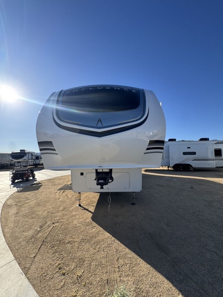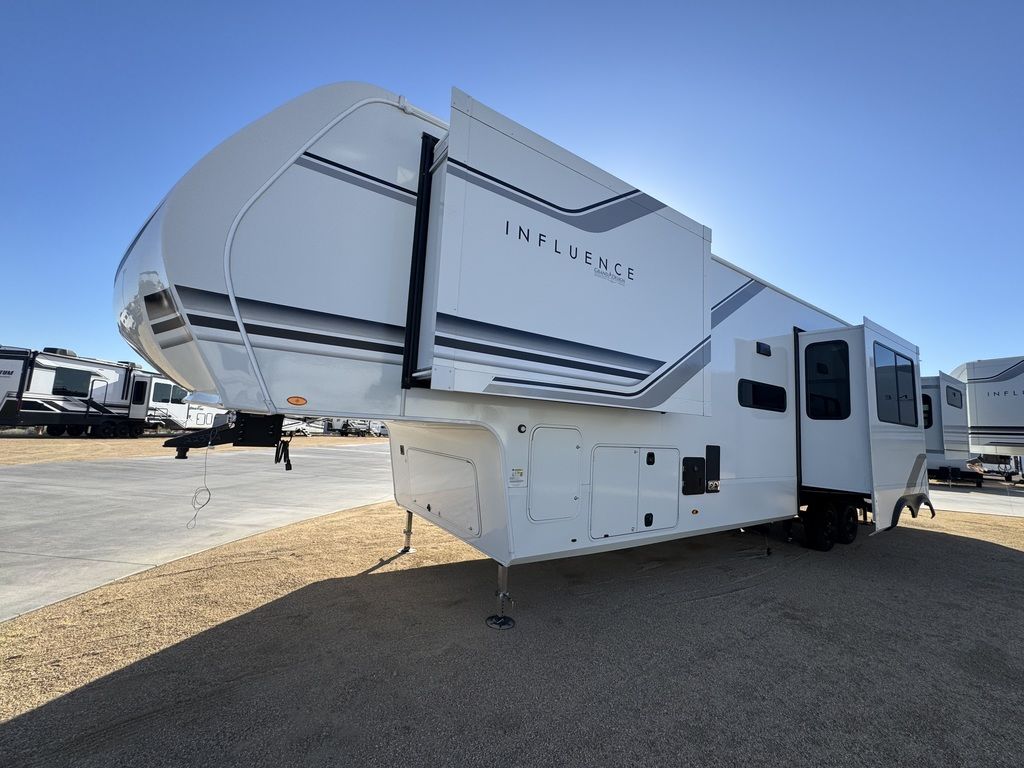 The Grand Design Influence fifth wheel RV is a luxurious and spacious home away from home. With a full profile design, this RV offers ample living space, perfect for families or those who enjoy entertaining guests. The residential attention to detail is evident throughout the RV, with features such as a gourmet kitchen, comfortable living area, and a master bedroom with a king-sized bed. Storage is not an issue in the influence, as it boasts an abundance of storage space both inside and outside the RV. Grand Design also offers exceptional customer support, ensuring that any issues or questions are promptly addressed. The Grand Design family is also a great resource for RV enthusiasts, with a community of like-minded individuals who share a passion for luxury and adventure. Overall, the Grand Design Influence fifth wheel RV is a top-of-the-line choice for those seeking a spacious, luxurious, and well-supported home on the road. A home built to roam. If you're simply looking for more room to breathe, the Influence has all the space of a Solitude in a more affordable package. Its taller ceilings, bigger cabinets, and a sweeping scenic window will make you feel right at home as long as you like.