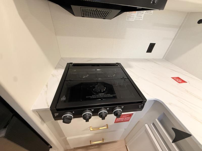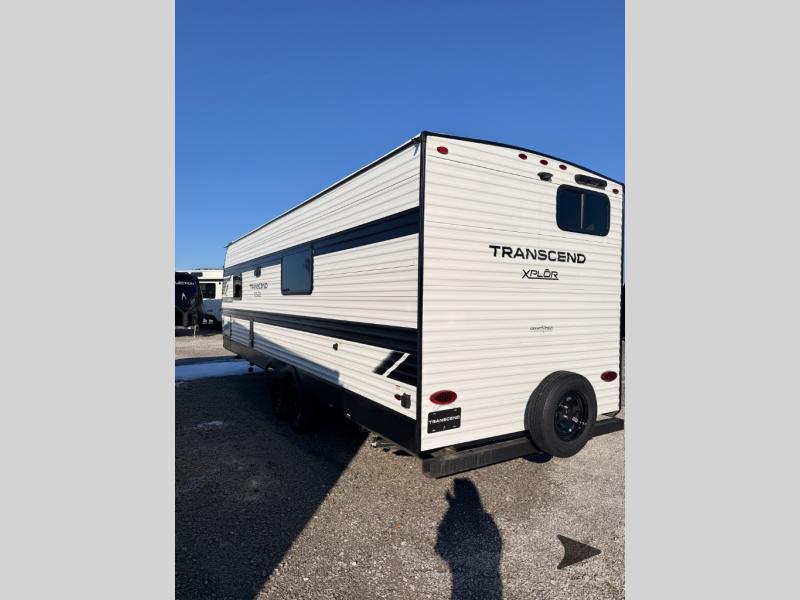 Grand Design Transcend Xplor travel trailer 24BHX highlights: 69" Rollover Sofa, Pet Dish, 15' Power Awning with LED Light, Double-Size Bunks with Curtains. This is the perfect travel trailer if you like to camp with friends and family. Since there are double-size bunks, a queen bed in the front bedroom, plus a booth dinette and sofa, you can sleep eight campers each night! The three burner range and microwave in the kitchen will let you cook meals each day, and the 12V refrigerator will keep your cold items fresh. This model also includes a counter with extra storage underneath, a pull-out trash can storage for convenience, and a full bath to freshen up in each day. And you'll love having your own space in the front bedroom with a privacy curtain, dual wardrobes, and TV prep if you want to add a television! The customer-focused, quality-built Transcend Xplor travel trailers by Grand Design are your ticket to fun and adventure. You will appreciate the power tongue jack when it comes time to set up, as well as the all-in-one utility center and the detachable power cord with an LED light. These models include many outlets throughout, USB ports to charge your gadgets, and a JBL exterior speaker to listen to your favorite tunes. The interior of the Transcend Xplor will have you feeling right at home with upgraded residential furniture, residential countertops, residential cabinet doors, and the list goes on!