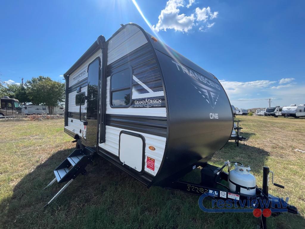 Grand Design Transcend One travel trailer 151BH highlights: Bunk Beds, Unobstructed Pass-Thru Storage, Pet Dish, 10' Power Awning. Camping trips to the lake have never been easier than with this travel trailer! The 28" x 67" bunks are right next to the private bath for easy nighttime use, and the front queen bed includes hidden storage for your things. There is also a 66" Jack knife sofa that provides a little more sleeping space for guests. A full kitchen lets you cook meals each day and there is an exterior LP quick connect if you want to fire up your own propane grill. With any Transcend One travel trailer by Grand Design, you will enjoy lightweight towing thanks to their single-axle. There are many interior comforts to make camping easier than ever, such as recessed lighting, residential countertops, and a 6' 6" interior height. Each model is constructed with a heated and enclosed underbelly with suspended tanks, a moisture barrier floor enclosure, and Thermofoil over the roof and front cap for added protection. And a JBL sound system will let you listen to tunes as you visit under the power awning with a Fusion light!