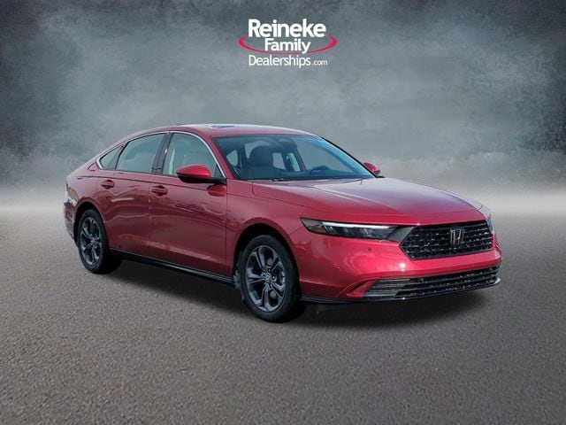 Recent Arrival! 2026 Honda Accord Hybrid EX-L 2.0L I4 DOHC 16V FWD CVT Radiant Red Metallic. At Reineke Family Dealerships, we pride ourselves on delivering a convenient and transparent buying experience. Get your key from Reineke! Please be aware that all listed vehicles are subject to additional applicable sales tax, titling, license, and registration fees, including a registration convenience fee of $50 where applicable and a documentary fee of up to $398. We attempt to update this inventory on a regular basis. However, there can be a delay between the sale of a vehicle and the update of the inventory. Pricing and availability may vary based on a variety of factors, including options, added accessories, manufacturer employee pricing, specials, fees, and financing qualifications. The estimated selling price that appears after calculating dealer offers is for informational purposes, only. While great effort is made to ensure the accuracy of the information on this site, absolute accuracy cannot be guaranteed, including vehicle equipment, condition, and pricing. Errors do occur so please verify information.