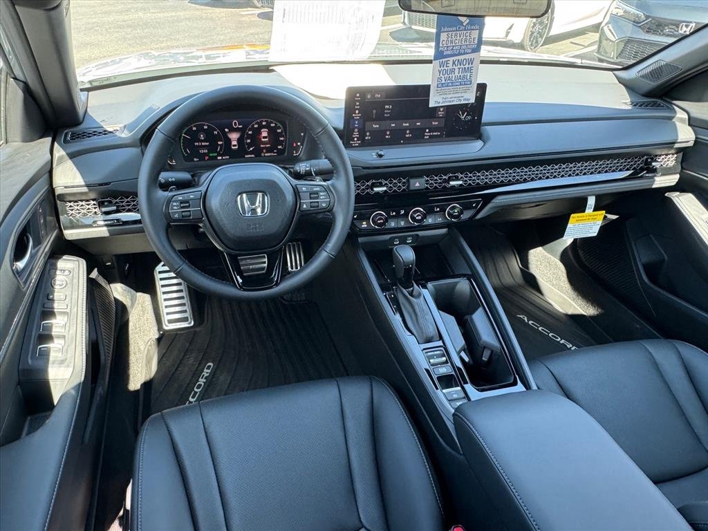 Apple CarPlay: Seamless smartphone integration for this model - stay connected and entertained on the go! This 2026 Honda Accord Hybrid has automated speed control that adjusts to maintain a safe following distance, enhancing highway driving convenience. This Honda Accord Hybrid features a hands-free Bluetooth phone system. This vehicle's Forward Collision Warning feature alerts drivers to potential front-end collisions. The leather seats in the Honda Accord Hybrid are a must for buyers looking for comfort, durability, and style. This unit offers Android Auto for seamless smartphone integration. Never get into a cold vehicle again with the remote start feature on it. See what's behind you with the back up camera on it. The Honda Accord Hybrid keeps you comfortable with Auto Climate. Set the temperature exactly where you are most comfortable in this unit. The fan speed and temperature will automatically adjust to maintain your preferred zone climate. This model emanates grace with its stylish gray exterior.