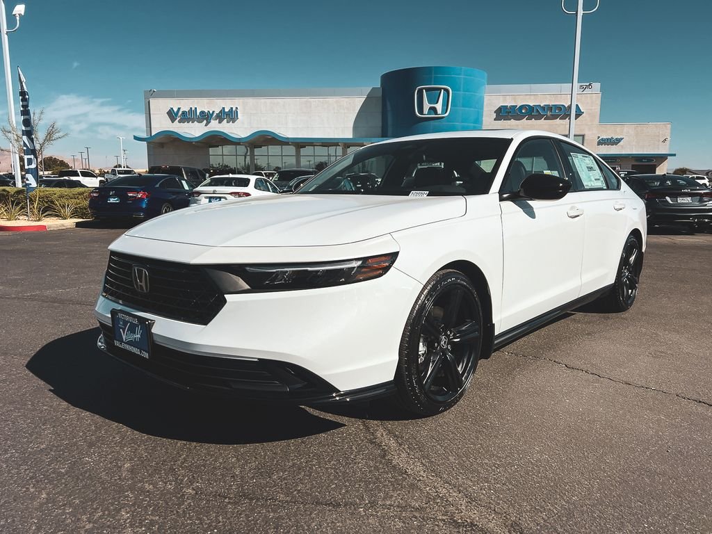 Platinum White Pearl 2026 Honda Accord Hybrid Sport-L 2.0L I4 DOHC 16V CVT. Recent Arrival! 46/41 City/Highway MPG. If you're searching for a high-quality vehicle or need professional auto repairs close to home, come to Valley Hi Honda, the only Honda dealer in the High Desert. We have an expert team ready to help with everything from flexible Honda financing options to top-notch Honda service to ensure that you fully enjoy your time on the road. Come meet with the team at Valley Hi Honda and see how our hometown feel, great prices and incredible selection make us the local car dealer you can trust! All vehicles subject to prior sale, price does not include Tax, Title, Registration or Documentation Fees. See Dealer for Details.