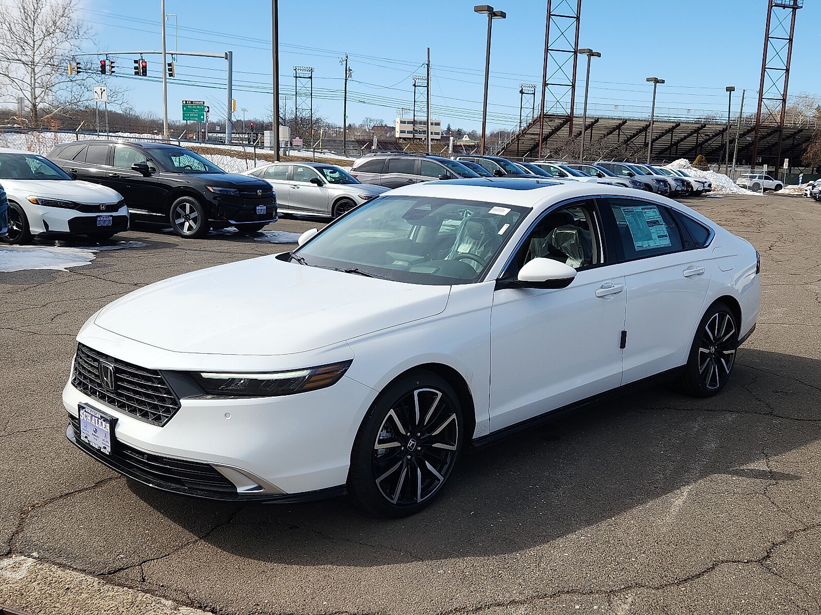 Recent Arrival! Schaller Auto World is delighted to offer this terrific 2026 Honda Accord Hybrid Touring in Platinum White Pearl. Beautifully equipped with 12 Speakers, 4-Wheel Disc Brakes, ABS brakes, Adaptive Cruise Control with Low-Speed Follow, Air Conditioning, Alloy wheels, AM/FM radio, Apple CarPlay/Android Auto, Auto High-beam Headlights, Auto-dimming Rear-View mirror, Automatic temperature control, Blind Spot Information System warning, Bose Premium Sound System, Brake assist, Bumpers: body-color, Compass, Delay-off headlights, Driver door bin, Driver vanity mirror, Dual front impact airbags, Dual front side impact airbags, Electronic Stability Control, Emergency communication system: HondaLink, Exterior Parking Camera Rear, Four wheel independent suspension, Front anti-roll bar, Front Bucket Seats, Front Center Armrest, Front dual zone A/C, Front reading lights, Fully automatic headlights, Heads-Up Display, Heated and Ventilated Front Bucket Seats, Heated door mirrors, Heated front seats, Heated rear seats, Heated steering wheel, Illuminated entry, Knee airbag, Lane departure: Lane Keeping Assist System active, Leather Shift Knob, Leather steering wheel, Leather-Trimmed Seat Trim, Low tire pressure warning, Memory seat, Navigation System, Occupant sensing airbag, Outside temperature display, Overhead airbag, Overhead console, Panic alarm, Passenger door bin, Passenger vanity mirror, Power door mirrors, Power driver seat, Power moonroof, Power passenger seat, Power steering, Power windows, Radio data system, Rain sensing wipers, Rear anti-roll bar, Rear reading lights, Rear seat center armrest, Rear side impact airbag, Rear window defroster, Remote keyless entry, Security system, Speed control, Speed-sensing steering, Speed-Sensitive Wipers, Split folding rear seat, Steering wheel mounted audio controls, Telescoping steering wheel, Tilt steering wheel, Traction control, Trip computer, Turn signal indicator mirrors. All new Schaller Cars Trucks and SUV's come with our EXCLUSIVE 10 year 150000 mile powertrain warranty! The Schaller Auto Group has been Serving the Communities around Hartford New Britain Berlin and Middletown since 1953. We have Hundreds of new and pre-owned vehicles in stock.