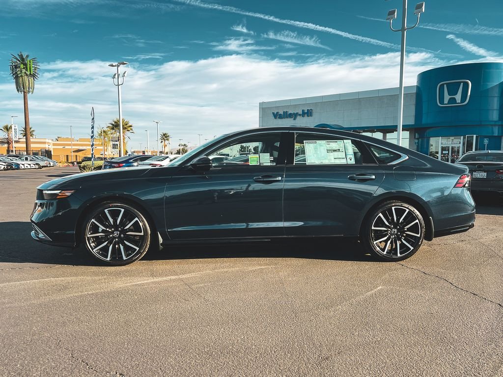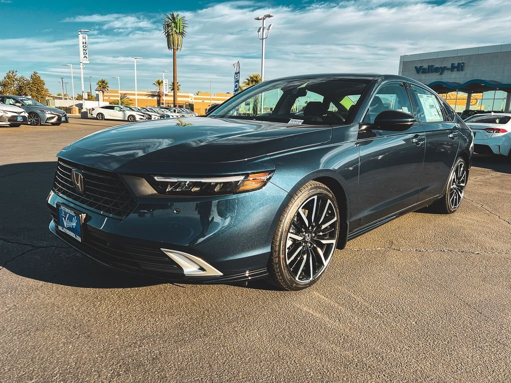 Canyon River Blue Metallic 2026 Honda Accord Hybrid Touring 2.0L I4 DOHC 16V CVT. Recent Arrival! 46/41 City/Highway MPG. If you're searching for a high-quality vehicle or need professional auto repairs close to home, come to Valley Hi Honda, the only Honda dealer in the High Desert. We have an expert team ready to help with everything from flexible Honda financing options to top-notch Honda service to ensure that you fully enjoy your time on the road. Come meet with the team at Valley Hi Honda and see how our hometown feel, great prices and incredible selection make us the local car dealer you can trust! All vehicles subject to prior sale, price does not include Tax, Title, Registration or Documentation Fees. See Dealer for Details.