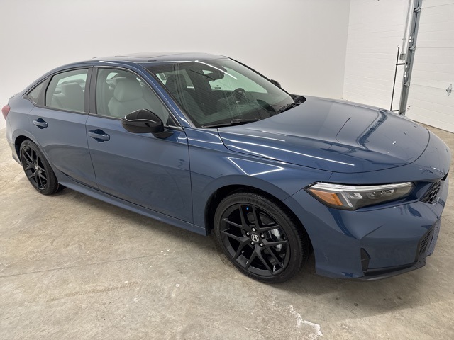 Honda Civic Hybrid Sport is a sleek, efficient, and fun-to-drive sedan that blends modern hybrid technology with sporty styling and performance. Its advanced hybrid powertrain delivers outstanding fuel economy without sacrificing responsiveness, making it perfect for both city commuting and longer drives. The Sport trim adds athletic exterior accents, premium interior touches, and a driver-focused cabin equipped with a large touchscreen display, Apple CarPlay and Android Auto, and a full suite of Honda Sensing safety features. With comfortable seating, impressive cargo space, and Hondas reputation for reliability, this Civic Hybrid Sport offers the ideal combination of efficiency, style, and everyday practicality.