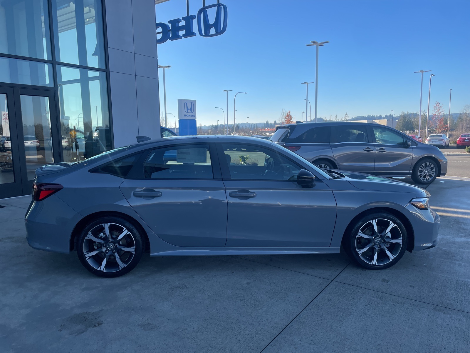 Gray 2026 Honda Civic Hybrid Sport Touring FWD eCVT 2.0L 16V DOHC Clean Carfax/no accidents reported, 125 point safety inspection, dealer serviced, service records available, fresh oil change, 2.0L 16V DOHC. The Interstate Honda Promise. When you visit our Honda dealership in Chehalis, WA, you’ll experience the Interstate Honda Promise in action. The Interstate Honda Promise. When you visit our Honda dealership in Chehalis, WA, you’ll experience the Interstate Honda Promise in action.