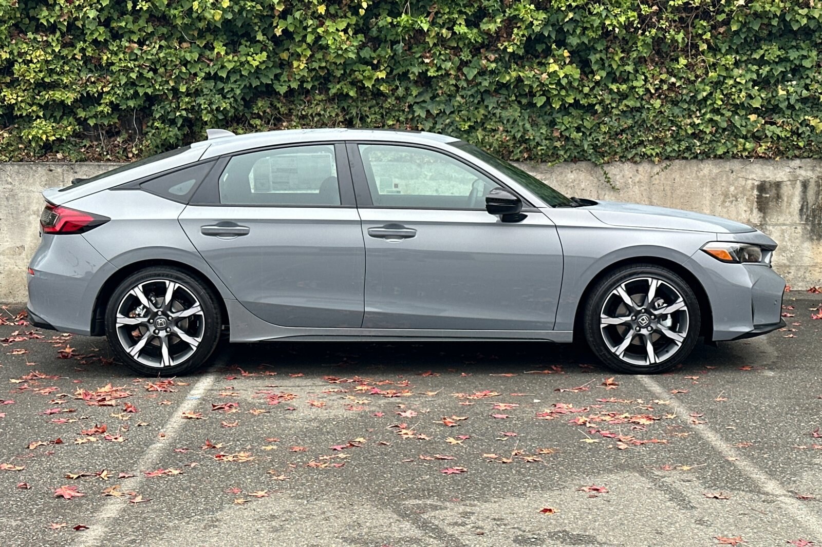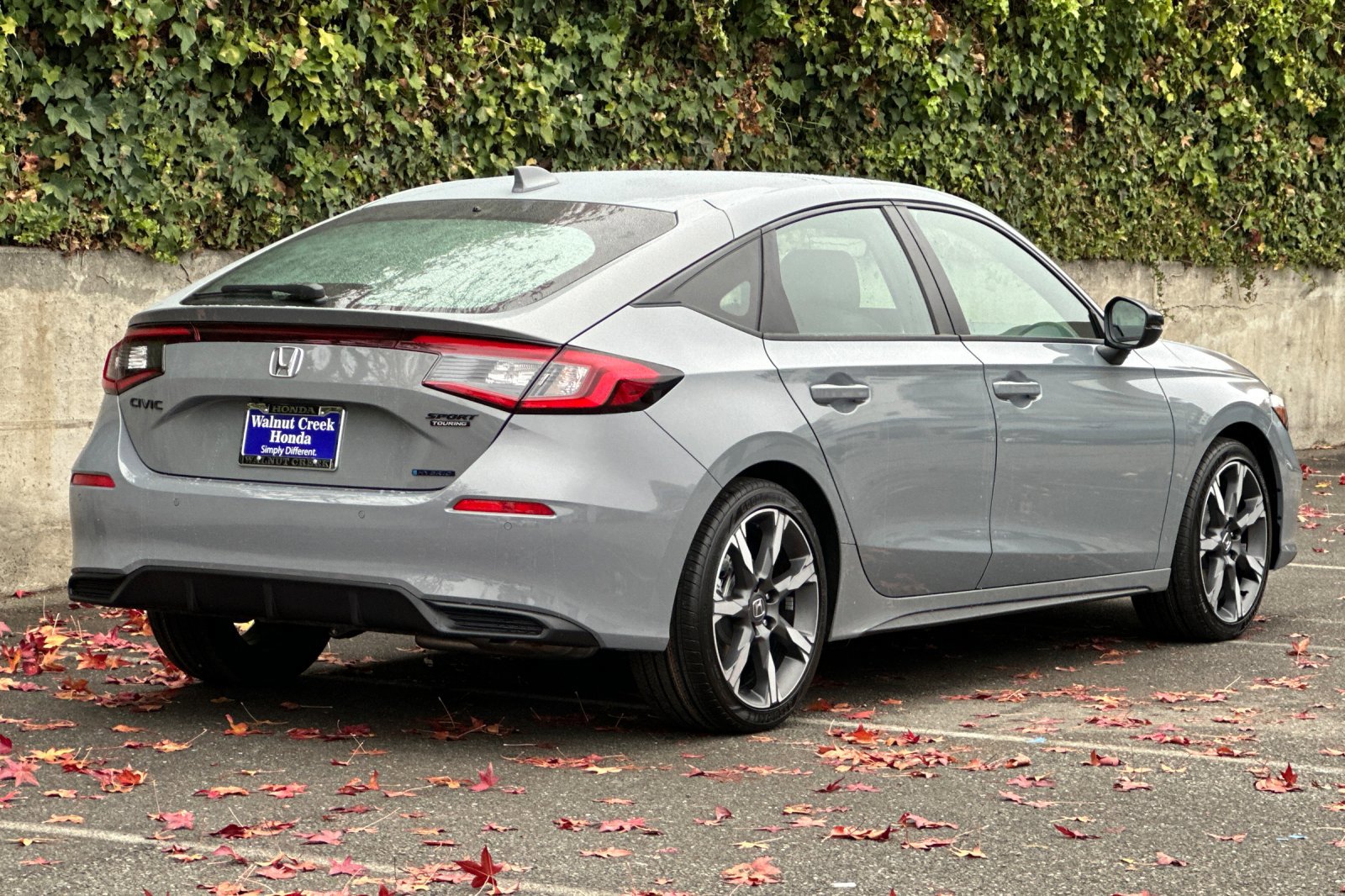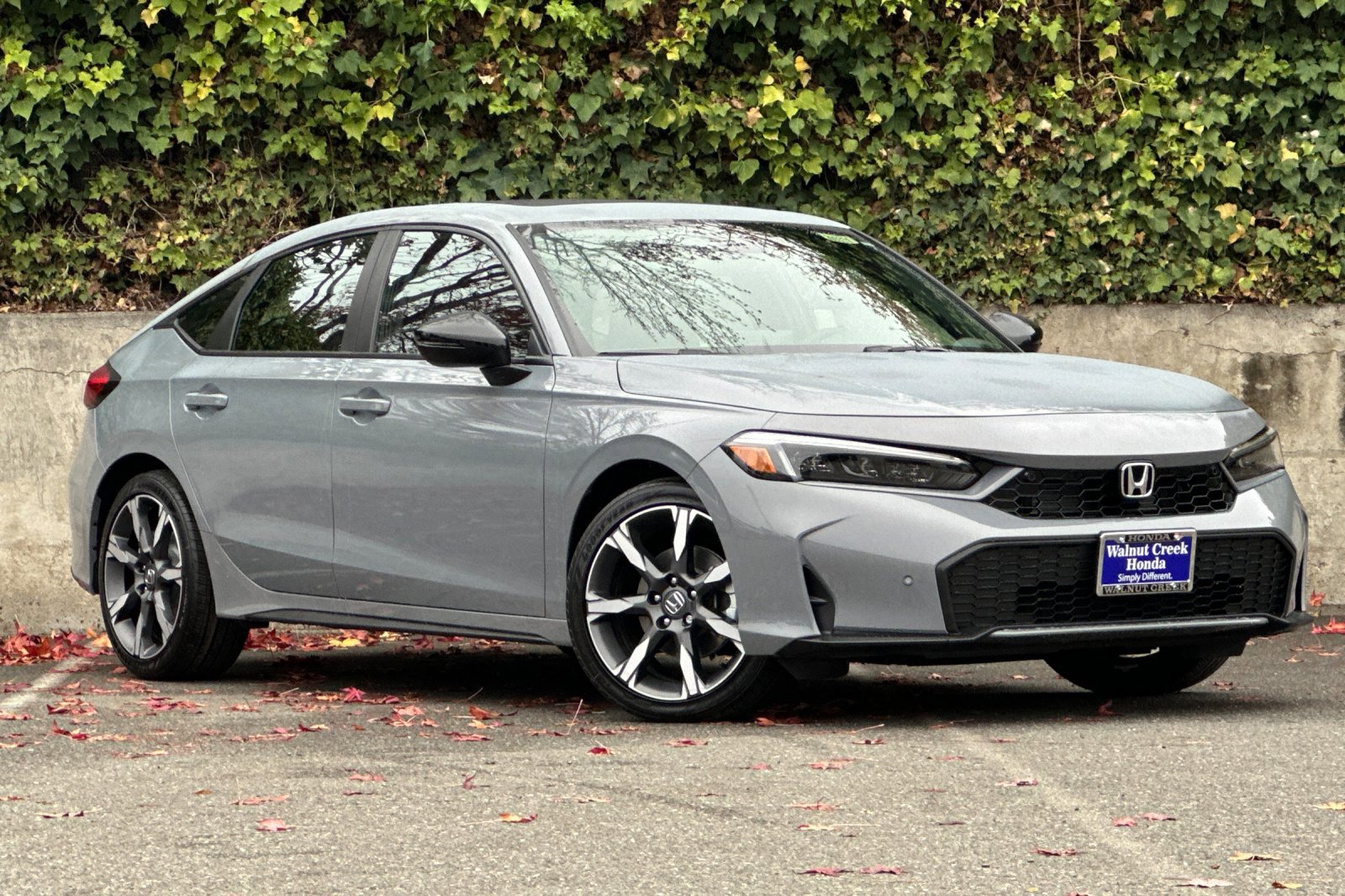 The 2026 Honda Civic Hybrid Sport Touring is a new hatchback with a hybrid electric powertrain. It features a 2.0L I-4 engine with an electric motor, offering a combined fuel economy of 48 mpg. The vehicle is in transit and available at Walnut Creek Honda. It comes with a range of safety and convenience features, including adaptive cruise control, lane departure warning, leather upholstery, and a power moonroof.