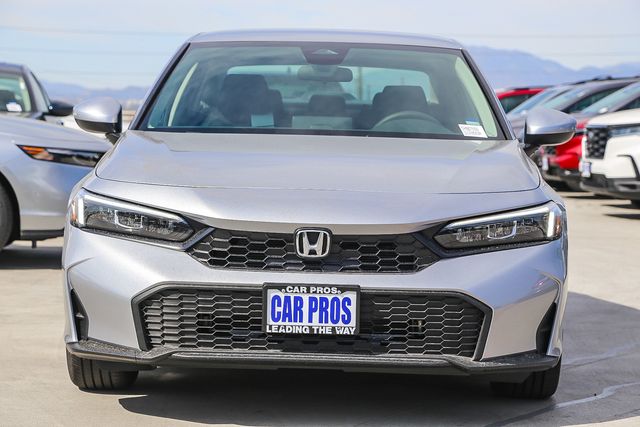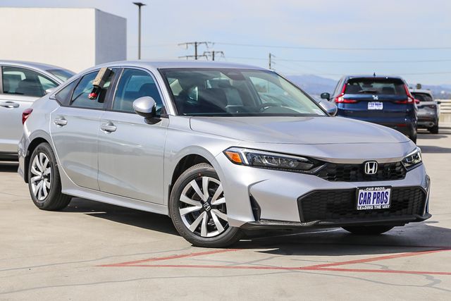 2026 Honda Civic LX Solar Silver Metallic Car Pros has a hassle free return policy. 3 days or 200 miles from time of delivery. FWD CVT 2.0L I4 DOHC 16V Recent Arrival! 32/41 City/Highway MPG Price does not include tax, title, license, or document fees or any dealer added accessories. Images are for illustration purposes only. Prices shown are manufacturer suggested retail prices only and do not include taxes, license, or doc fee. Manufacturer vehicle accessory costs, labor and installation vary. All Pricing and Advertised Prices for all vehicles offered for sale does not include any dealer accessory. Please contact us with any questions. Based on 2022 EPA mileage ratings. Use for comparison purposes only. Your mileage will vary depending on driving conditions, how you drive and maintain your vehicle, battery-pack age/condition, and other factors.