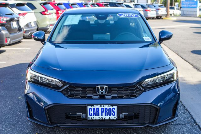 2026 Honda Civic LX Blue Lagoon Pearl. Car Pros has a hassle free return policy. 3 days or 200 miles from time of delivery. FWD CVT 2.0L I4 DOHC 16V Recent Arrival! 32/41 City/Highway MPG. Price does not include tax, title, license, or document fees or any dealer added accessories. Images are for illustration purposes only. Prices shown are manufacturer suggested retail prices only and do not include taxes, license, or doc fee. Manufacturer vehicle accessory costs, labor and installation vary. All Pricing and Advertised Prices for all vehicles offered for sale does not include any dealer accessory. Please contact us with any questions. Based on 2022 EPA mileage ratings. Use for comparison purposes only. Your mileage will vary depending on driving conditions, how you drive and maintain your vehicle, battery-pack age/condition, and other factors.