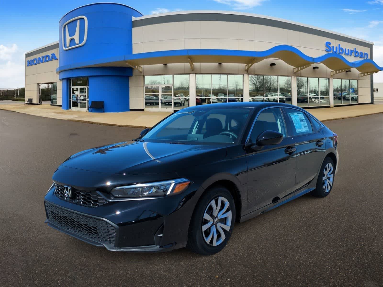 Black Cloth, 4 Speakers, 4-Wheel Disc Brakes, ABS brakes, Adaptive Cruise Control: Adaptive Cruise Control (ACC) with Low-Speed Follow, Air Conditioning, AM/FM radio, Apple CarPlay/Android Auto, Auto High-beam Headlights, Automatic temperature control, Brake assist, Bumpers: body-color, Cloth Seating Surfaces, Delay-off headlights, Driver door bin, Driver vanity mirror, Dual front impact airbags, Dual front side impact airbags, Electronic Stability Control, Emergency communication system: HondaLink, Exterior Parking Camera Rear, Four wheel independent suspension, Front anti-roll bar, Front Bucket Seats, Front Center Armrest, Front reading lights, Fully automatic headlights, Illuminated entry, Knee airbag, Low tire pressure warning, Occupant sensing airbag, Outside temperature display, Overhead airbag, Panic alarm, Passenger door bin, Passenger vanity mirror, Power door mirrors, Power steering, Power windows, Radio data system, Radio: 160-Watt Audio System, Rear anti-roll bar, Rear side impact airbag, Rear window defroster, Remote keyless entry, Security system, Speed control, Speed-sensing steering, Steering wheel mounted audio controls, Tachometer, Telescoping steering wheel, Tilt steering wheel. Crystal Black Pearl 2026 Honda Civic LX CVT Black Cloth. Recent Arrival! 32/41 City/Highway MPG. Price does not include licensing costs, registration fees, taxes and dealer doc fee of $280, which are to be paid by the consumer. Price includes: $500 - Honda Graduate Offer. Exp. 03/31/2026 $500 - Honda Military Appreciation Offer. Exp. 03/31/2026 $500 - Loyalty/Conquest. Exp. 04/30/2026. Images are for illustration purposes only. Prices shown are manufacturer suggested retail prices only and do not include taxes, license, or doc fee. Manufacturer vehicle accessory costs, labor and installation vary. Please contact us with any questions.