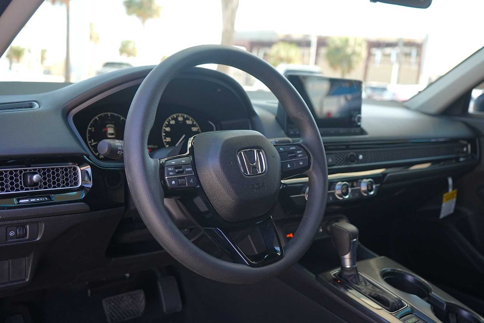 2026 Honda Civic LX Black Cloth, 4 Speakers, 4-Wheel Disc Brakes, ABS brakes, Adaptive Cruise Control: Adaptive Cruise Control (ACC) with Low-Speed Follow, Air Conditioning, AM/FM radio, Apple CarPlay/Android Auto, Auto High-beam Headlights, Automatic temperature control, Brake assist, Bumpers: body-color, Cloth Seating Surfaces, Delay-off headlights, Driver door bin, Driver vanity mirror, Dual front impact airbags, Dual front side impact airbags, Electronic Stability Control, Emergency communication system: HondaLink, Exterior Parking Camera Rear, Four wheel independent suspension, Front anti-roll bar, Front Bucket Seats, Front Center Armrest, Front reading lights, Fully automatic headlights, Illuminated entry, Knee airbag, Low tire pressure warning, Occupant sensing airbag, Outside temperature display, Overhead airbag, Panic alarm, Passenger door bin, Passenger vanity mirror, Power door mirrors, Power steering, Power windows, Radio data system, Radio: 160-Watt Audio System, Rear anti-roll bar, Rear side impact airbag, Rear window defroster, Remote keyless entry, Security system, Speed control, Speed-sensing steering, Steering wheel mounted audio controls, Tachometer. 32/41 City/Highway MPG.