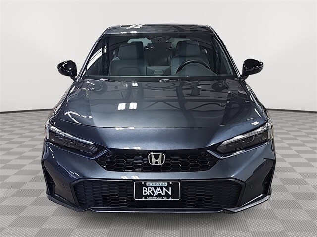 Recent Arrival! Meteorite Gray Metallic 2026 Honda Civic Hybrid Sport Touring FWD 2.0L I4 DOHC 16V eCVT. This 2026 Honda Civic Hybrid Sport Touring in Meteorite Gray Metallic features: 2.0L I4 DOHC 16V, 12 Speakers, 4-Wheel Disc Brakes, ABS brakes, Adaptive Cruise Control: Adaptive Cruise Control (ACC) with Low-Speed Follow, Air Conditioning, Alloy wheels, AM/FM radio, Apple CarPlay/Android Auto, Auto High-beam Headlights, Auto-dimming Rear-View mirror, Automatic temperature control, Blind Spot Information (BSI) System warning, Bose Premium Sound System, Brake assist, Bumpers: body-color, Compass, Delay-off headlights, Driver door bin, Driver vanity mirror, Dual front impact airbags, Dual front side impact airbags, Electronic Stability Control, Emergency communication system: HondaLink, Exterior Parking Camera Rear, Four wheel independent suspension, Front anti-roll bar, Front Bucket Seats, Front Center Armrest, Front dual zone A/C, Front reading lights, Fully automatic headlights, Heated door mirrors, Heated Front Bucket Seats, Heated front seats, Illuminated entry, Knee airbag, Lane departure: Lane Keeping Assist System (LKAS) active, Leather Shift Knob, Leather steering wheel, Leather-Trimmed Seat Trim, Low tire pressure warning, Navigation system: Google Maps, Occupant sensing airbag, Outside temperature display, Overhead airbag, Overhead console, Panic alarm, Passenger door bin, Passenger vanity mirror, Power door mirrors, Power driver seat, Power moonroof, Power passenger seat, Power steering, Power windows, Radio data system, Rain sensing wipers, Rear anti-roll bar, Rear seat center armrest, Rear side impact airbag, Rear window defroster, Rear window wiper, Remote keyless entry, Security system, Speed control, Speed-sensing steering, Split folding rear seat, Steering wheel mounted audio controls, Tachometer, Telescoping steering wheel, Tilt steering wheel, Traction control, Trip computer, Turn signal indicator mirrors.