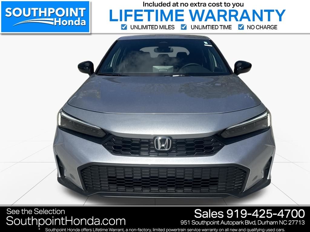 Solar Silver Metallic 2026 Honda Civic Sport FWD CVT Nh-932m/Black Artificial Leather. We are pleased to present this Civic Sport which includes the following features: Nh-932m/Black Artificial Leather, 4-Wheel Disc Brakes, 8 Speakers, ABS brakes, Adaptive Cruise Control: Adaptive Cruise Control (ACC) with Low-Speed Follow, Air Conditioning, Alloy wheels, AM/FM radio, Apple CarPlay/Android Auto, Auto High-beam Headlights, Automatic temperature control, Blind Spot Information (BSI) System warning, Brake assist, Bumpers: body-color, Cloth/Leatherette Seating Surfaces, Delay-off headlights, Driver door bin, Driver vanity mirror, Dual front impact airbags, Dual front side impact airbags, Electronic Stability Control, Emergency communication system: HondaLink, Exterior Parking Camera Rear, Four wheel independent suspension, Front anti-roll bar, Front Bucket Seats, Front Center Armrest, Front reading lights, Fully automatic headlights, Heated door mirrors, HondaLink, Illuminated entry, Knee airbag, Lane departure: Lane Keeping Assist System (LKAS) active, Leather Shift Knob, Low tire pressure warning, Occupant sensing airbag, Outside temperature display, Overhead airbag, Panic alarm, Passenger door bin, Passenger vanity mirror, Power door mirrors, Power steering, Power windows, Radio data system, Radio: 180-Watt Audio System, Rear anti-roll bar, Rear side impact airbag, Rear window defroster, Rear window wiper, Remote keyless entry, Security system, Speed control, Speed-sensing steering, Split folding rear seat, Steering wheel mounted audio controls, Tachometer, Telescoping steering wheel, Tilt steering wheel, Traction control, Trip computer, and Wheels: 18" Gloss Black Alloy. Southpoint Honda: Durham's Premier Automotive Resource Serving Apex, The Downs, Chapel Hill, and Raleigh At Southpoint Honda, we understand that buying a car is more than just a transaction. Our team is dedicated to guiding you through every step of your automotive journey, from selecting the perfect new or used Honda to maintaining your vehicle with expert service and genuine OEM parts. We're committed to helping you achieve your automotive dreams. Why Choose Southpoint Honda? Drivers from Apex, The Downs, Chapel Hill, and Raleigh consistently choose Southpoint Honda for our exceptional service. Whether you need assistance with sales, service, parts, or financing, our team is here to provide high-quality, modern support. Our in-house finance experts are ready to help you find the best auto loans, leasing deals, and finance packages to meet your needs. We aim to make your experience simple and convenient, whether you're buying, trading in, or getting your vehicle repaired. Visit Us in Durham Experience the unique Southpoint Honda customer service in person. Make the trip from Apex, The Downs, Chapel Hill, or Raleigh to our Durham location and discover how enjoyable car shopping and ownership can be with a professional dealership by your side. We're here to answer all your questions and assist with all your vehicle needs.