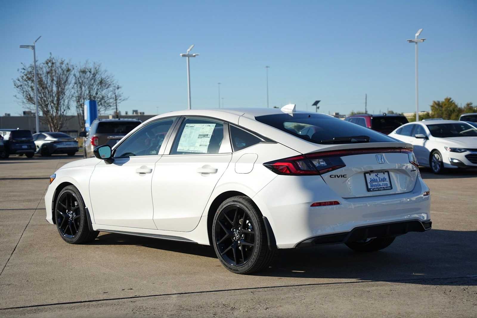 2026 Honda Civic Sport Black Artificial Leather, 4-Wheel Disc Brakes, 8 Speakers, ABS brakes, Adaptive Cruise Control: Adaptive Cruise Control (ACC) with Low-Speed Follow, Air Conditioning, Alloy wheels, AM/FM radio, Apple CarPlay/Android Auto, Auto High-beam Headlights, Automatic temperature control, Blind Spot Information (BSI) System warning, Brake assist, Bumpers: body-color, Cloth/Leatherette Seating Surfaces, Delay-off headlights, Driver door bin, Driver vanity mirror, Dual front impact airbags, Dual front side impact airbags, Electronic Stability Control, Emergency communication system: HondaLink, Exterior Parking Camera Rear, Four wheel independent suspension, Front anti-roll bar, Front Bucket Seats, Front Center Armrest, Front reading lights, Fully automatic headlights, Heated door mirrors, HondaLink, Illuminated entry, Knee airbag, Lane departure: Lane Keeping Assist System (LKAS) active, Leather Shift Knob, Low tire pressure warning, Occupant sensing airbag, Outside temperature display, Overhead airbag, Panic alarm, Passenger door bin, Passenger vanity mirror, Power door mirrors, Power steering, Power windows, Radio data system, Radio: 180-Watt Audio System, Rear anti-roll bar, Rear side impact airbag, Rear window defroster, Rear window wiper, Remote keyless entry, Security system, Speed control, Speed-sensing steering, Split folding rear seat, Steering wheel mounted audio controls, Tachometer, Telescoping steering wheel, Tilt steering wheel, Traction control, Trip computer, Wheels: 18 Gloss Black Alloy, Black Artificial Leather. 30/38 City/Highway MPG Price plus TT&L, $225 Dealer Doc fee and any applicable fees. Images are for illustration purposes only. Prices shown are manufacturer suggested retail prices including destination & handling. Not including taxes, license, or doc fee. Manufacturer vehicle accessory costs, labor and installation vary. Please contact us with any questions. Based on 2022 EPA mileage and driving range ratings. Use for comparison purposes only. Your MPGe/MPG and driving range will vary depending on driving conditions, how you drive and maintain your vehicle, lithium-ion battery age/condition, and other factors. For additional information about EPA ratings, visit http://www.fueleconomy.gov/feg/label/learn-more-PHEV-label.shtml Prices do not include government fees and taxes, any finance charges, a dealer documentary service fee in the amount up to $225, accessories or additional options, any electronic filing charge and any emission testing charge.