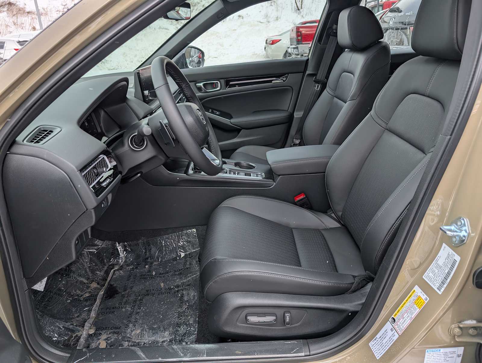 Key Features of this 2026 Honda Civic Hybrid include: Heated Driver Seat, Leather Seats, Moonroof, Keyless Entry, Remote Engine Start, Navigation, WiFi Hotspot, Hybrid, Premium Sound System, iPod/MP3 Input, Leather Wrapped Steering Wheel, Back-Up Camera, Dual Zone A/C, Aluminum Wheels, Onboard Communications System MP3 Player, Steering Wheel Controls, Child Safety Locks, Electronic Stability Control, Rain Sensing Wipers. Honda Sport Touring with Sand Dune Pearl exterior and Black interior features a 4 Cylinder Engine with 200 HP at 6000 RPM.