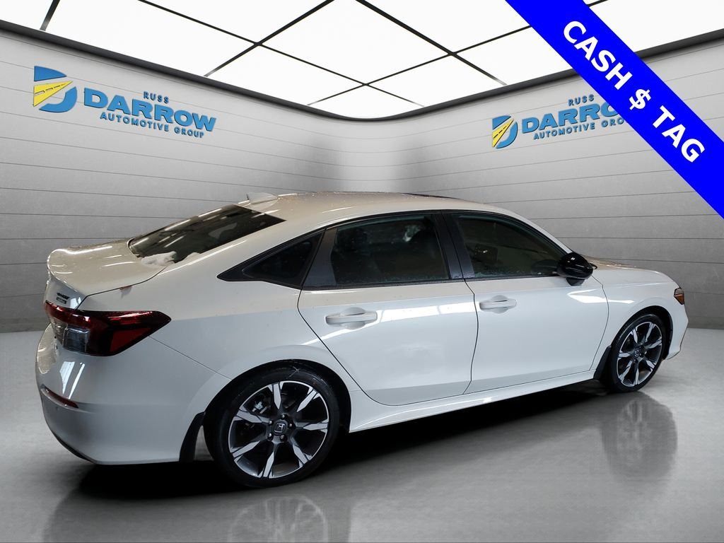 2026 Honda Civic Hybrid Sport Touring 2.0L 16V DOHC Platinum White Pearl FWD eCVT BLUETOOTH(R) CONNECTION FOR MOBILE PHONE, GPS NAVIGATION SYSTEM, POWER SLIDING Moonroof, REAR BACK-UP CAMERA w/DISPLAY, ANDROID AUTO & APPLE CARPLAY, BLIND SPOT MONITORING, HEATED FRONT SEATS, Automatic temperature control, Front dual zone A/C. Includes exclusive membership status in the Russ Darrow Rewards Program. Earn points for every dollar spent on goods and services at any Russ Darrow location, plus extra points if purchasing packages with the Finance office. Use these points on your next new or used vehicle purchase at any Russ Darrow Dealership. You will earn $10 for every 1,000 points redeemed, up to a maximum redemption of $500 per transaction. For more detailed information visit russdarrowrewards.com.