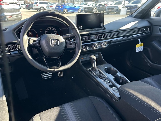 2026 Honda Civic Sport Meteorite Blk Cloth/Letters Artificial Leather, 4-Wheel Disc Brakes, 8 Speakers, ABS brakes, Adaptive Cruise Control: Adaptive Cruise Control (ACC) with Low-Speed Follow, Air Conditioning, Alloy wheels, AM/FM radio, Apple CarPlay/Android Auto, Auto High-beam Headlights, Automatic temperature control, Blind Spot Information (BSI) System warning, Brake assist, Bumpers: body-color, Cloth/Leatherette Seating Surfaces, Delay-off headlights, Driver door bin, Driver vanity mirror, Dual front impact airbags, Dual front side impact airbags, Electronic Stability Control, Emergency communication system: HondaLink, Exterior Parking Camera Rear, Four wheel independent suspension, Front anti-roll bar, Front Bucket Seats, Front Center Armrest, Front reading lights, Fully automatic headlights, Heated door mirrors, Illuminated entry, Knee airbag, Leather Shift Knob, Leather steering wheel, Low tire pressure warning, Occupant sensing airbag, Other.