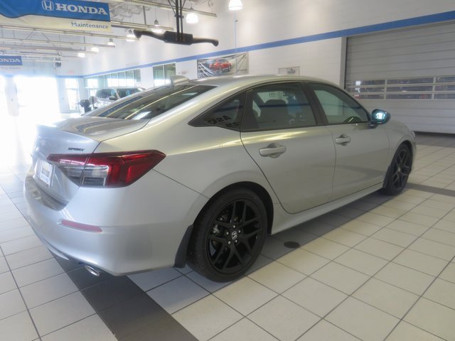 Solar Silver Metallic 2026 Honda Civic Sport FWD CVT 2.0L I4 DOHC 16V 4-Wheel Disc Brakes, 8 Speakers, ABS brakes, Adaptive Cruise Control: Adaptive Cruise Control (ACC) with Low-Speed Follow, Air Conditioning, Alloy wheels, AM/FM radio, Apple CarPlay/Android Auto, Auto High-beam Headlights, Blind Spot Information (BSI) System warning, Brake assist, Bumpers: body-color, Cloth/Leatherette Seating Surfaces, Delay-off headlights, Driver door bin, Driver vanity mirror, Dual front impact airbags, Dual front side impact airbags, Electronic Stability Control, Emergency communication system: HondaLink, Exterior Parking Camera Rear, Four wheel independent suspension, Front anti-roll bar, Front Bucket Seats, Front Center Armrest, Front reading lights, Fully automatic headlights, Heated door mirrors, Illuminated entry, Knee airbag, Leather Shift Knob, Leather steering wheel, Low tire pressure warning, Occupant sensing airbag, Outside temperature display, Overhead airbag, Panic alarm, Passenger door bin, Passenger vanity mirror, Power door mirrors, Power steering, Power windows, Radio data system, Radio: 180-Watt Audio System, Rear anti-roll bar, Rear seat center armrest, Rear side impact airbag, Rear window defroster, Remote keyless entry, Security system, Speed control, Speed-sensing steering, Split folding rear seat, Steering wheel mounted audio controls, Tachometer, Telescoping steering wheel, Tilt steering wheel, Traction control, Trip computer, Wheels: 18" Gloss Black Alloy. The Lifetime Powertrain Loyalty Program covers engine, transmission, transfer case and drive axle components. No expiration by time or miles. Vehicle maintenance is required. For additional information about the Lifetime Warranty Powertrain Loyalty Program for the compact car category.