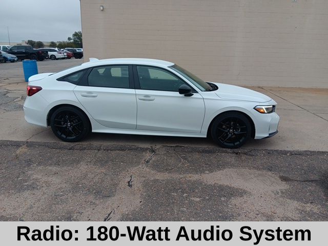 Platinum White Pearl 2026 Honda Civic Sport Black Artificial Leather, Adaptive Cruise Control, Apple CarPlay/Android Auto, Blind Spot Information System warning, Cloth/Leatherette Seating Surfaces, Fully automatic headlights, Heated door mirrors, Radio: 180-Watt Audio System, Security system, Wheels: 18" Gloss Black Alloy. Drive Forever limited lifetime engine and transmission protection on all eligible new vehicles. Every new vehicle includes a complimentary rental vehicle when you have any Service completed for three full years. Conklin Automotive Hutchinson New Car Dealership near Wichita Kansas. Recent Arrival! 31/39 City/Highway MPG