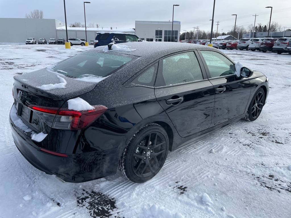 2026 Crystal Black Pearl Honda Civic Sport FWD CVT 2.0L I4 DOHC 16V This Honda Civic has many features and is well equipped including, 4-Wheel Disc Brakes, 8 Speakers, ABS brakes, Adaptive Cruise Control: Adaptive Cruise Control (ACC) with Low-Speed Follow, Air Conditioning, Alloy wheels, AM/FM radio, Apple CarPlay/Android Auto, Auto High-beam Headlights, Blind Spot Information (BSI) System warning, Brake assist, Bumpers: body-color, Cloth/Leatherette Seating Surfaces, Delay-off headlights, Driver door bin, Driver vanity mirror, Dual front impact airbags, Dual front side impact airbags, Electronic Stability Control, Emergency communication system: HondaLink, Exterior Parking Camera Rear, Four wheel independent suspension, Front anti-roll bar, Front Bucket Seats, Front Center Armrest, Front reading lights, Fully automatic headlights, Heated door mirrors, Illuminated entry, Knee airbag, Leather Shift Knob, Leather steering wheel, Low tire pressure warning, Occupant sensing airbag, Outside temperature display, Overhead airbag, Panic alarm, Passenger door bin, Passenger vanity mirror, Power door mirrors, Power steering, Power windows, Radio data system, Radio: 180-Watt Audio System, Rear anti-roll bar, Rear seat center armrest, Rear side impact airbag, Rear window defroster, Remote keyless entry, Security system, Speed control, Speed-sensing steering, Split folding rear seat, Steering wheel mounted audio controls, Tachometer, Telescoping steering wheel, Tilt steering wheel, Traction control, Trip computer, Wheels: 18" Gloss Black Alloy.