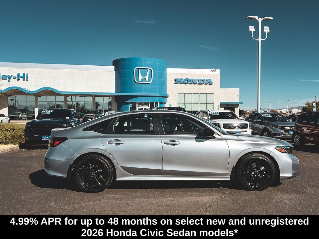 Solar Silver Metallic 2026 Honda Civic Sport 2.0L I4 DOHC 16V CVT. Recent Arrival! 31/39 City/Highway MPG. If you're searching for a high-quality vehicle or need professional auto repairs close to home, come to Valley Hi Honda, the only Honda dealer in the High Desert. We have an expert team ready to help with everything from flexible Honda financing options to top-notch Honda service to ensure that you fully enjoy your time on the road. Come meet with the team at Valley Hi Honda and see how our hometown feel, great prices and incredible selection make us the local car dealer you can trust! All vehicles subject to prior sale, price does not include Tax, Title, Registration or Documentation Fees. See Dealer for Details.