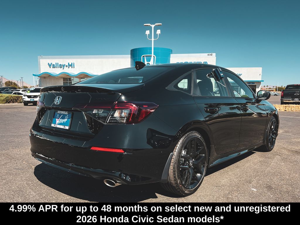 Crystal Black Pearl 2026 Honda Civic Sport 2.0L I4 DOHC 16V CVT. Recent Arrival! 31/39 City/Highway MPG. If you're searching for a high-quality vehicle or need professional auto repairs close to home, come to Valley Hi Honda, the only Honda dealer in the High Desert. We have an expert team ready to help with everything from flexible Honda financing options to top-notch Honda service to ensure that you fully enjoy your time on the road. Come meet with the team at Valley Hi Honda and see how our hometown feel, great prices and incredible selection make us the local car dealer you can trust! All vehicles subject to prior sale, price does not include Tax, Title, Registration or Documentation Fees. See Dealer for Details.