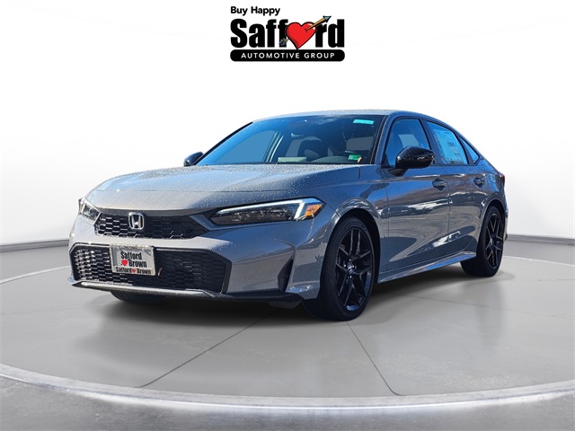 Urban Gray Pearl 2026 Honda Civic Hybrid Sport 2.0L 16V DOHC, 4-Wheel Disc Brakes, 8 Speakers, ABS brakes, Adaptive Cruise Control: Adaptive Cruise Control (ACC) with Low-Speed Follow, Air Conditioning, Alloy wheels, AM/FM radio, Apple CarPlay/Android Auto, Auto High-beam Headlights, Automatic temperature control, Blind Spot Information (BSI) System warning, Brake assist, Bumpers: body-color, Cloth/Leatherette Seat Trim, Delay-off headlights, Driver door bin, Driver vanity mirror, Dual front impact airbags, Dual front side impact airbags, Electronic Stability Control, Emergency communication system: HondaLink, Exterior Parking Camera Rear, Four wheel independent suspension, Front anti-roll bar, Front Bucket Seats, Front Center Armrest, Front dual zone A/C, Front reading lights, Fully automatic headlights, Heated door mirrors, Heated Front Bucket Seats, Heated front seats, Illuminated entry, Knee airbag, Leather Shift Knob, Leather steering wheel, Low tire pressure warning, Occupant sensing airbag, Outside temperature display, Overhead airbag, Panic alarm, Passenger door bin, Passenger vanity mirror, Power door mirrors, Power moonroof, Power steering, Power windows, Radio data system, Radio: 180-Watt Audio System, Rear anti-roll bar, Rear seat center armrest, Rear side impact airbag, Rear window defroster, Remote keyless entry, Security system, Speed control, Speed-sensing steering, Split folding rear seat, Steering wheel mounted audio controls, Tachometer, Telescoping steering wheel, Tilt steering wheel, Traction control.