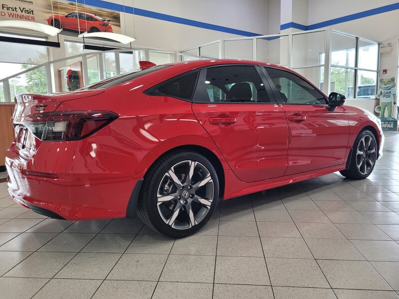 The 2026 Honda Civic Sedan Hybrid Sport Touring CVT in Rallye Red offers a blend of efficiency and comfort. With a 2.0L 4-cylinder engine paired to a hybrid electric motor, this sedan delivers an estimated 50 mpg city and 47 mpg highway. The interior features a full cloth headliner. With a remote engine start and a full cloth. The Civic Civic is a Midsize Cars.