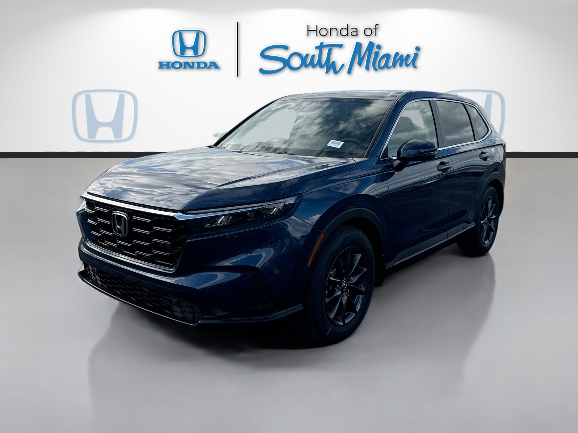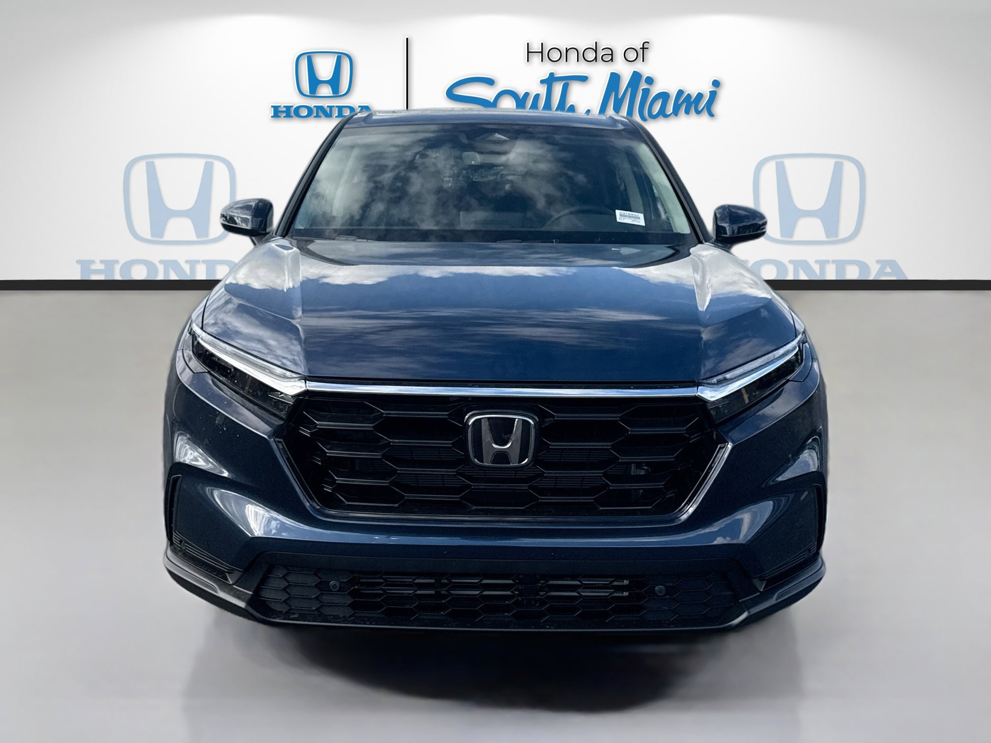 Canyon River Blue Metallic 2026 Honda CR-V EX-L. 28/33 City/Highway MPG. Equipped with Adaptive Cruise Control, Apple CarPlay, Android Auto, and a turbocharged 1.5L engine.