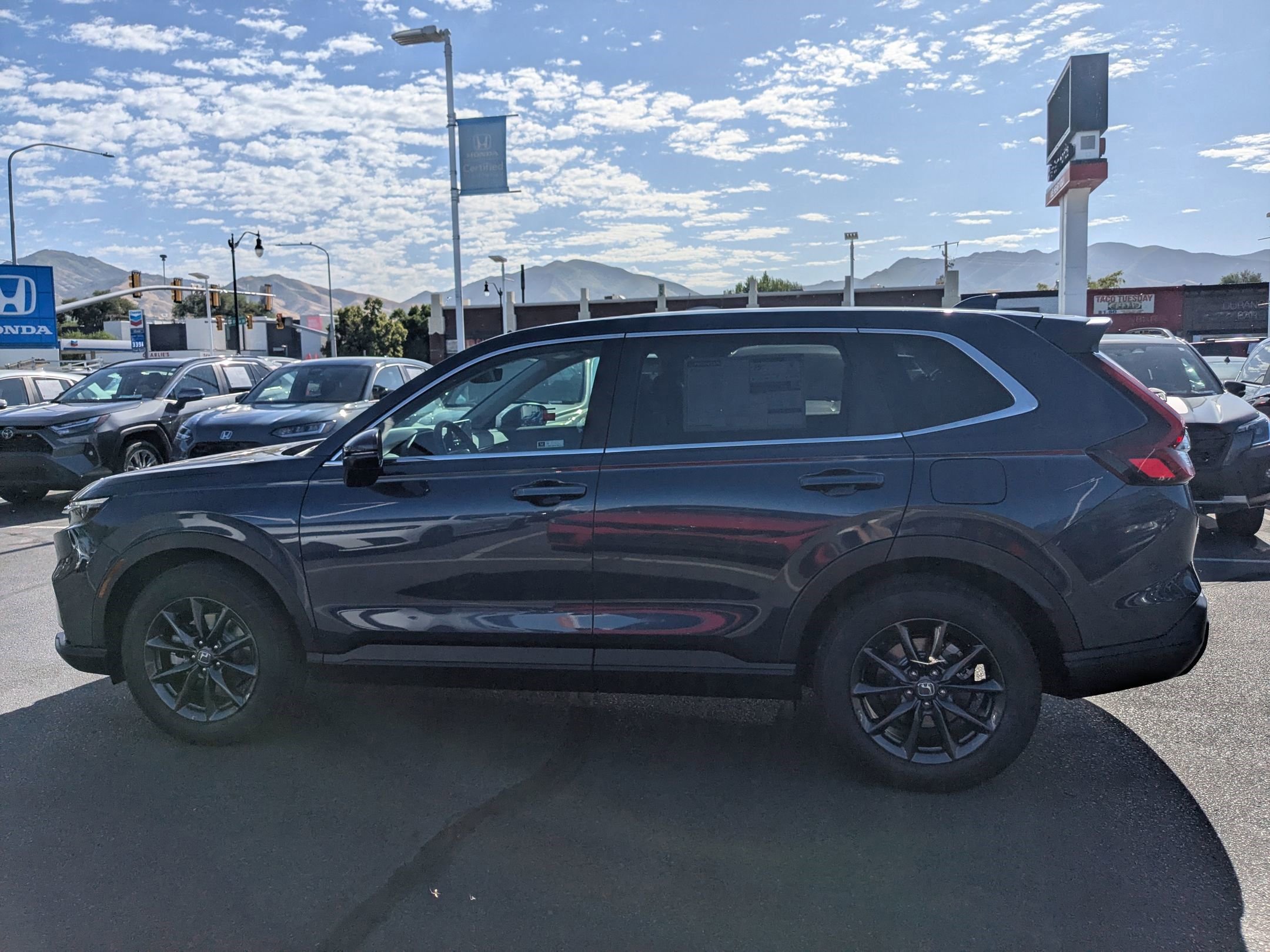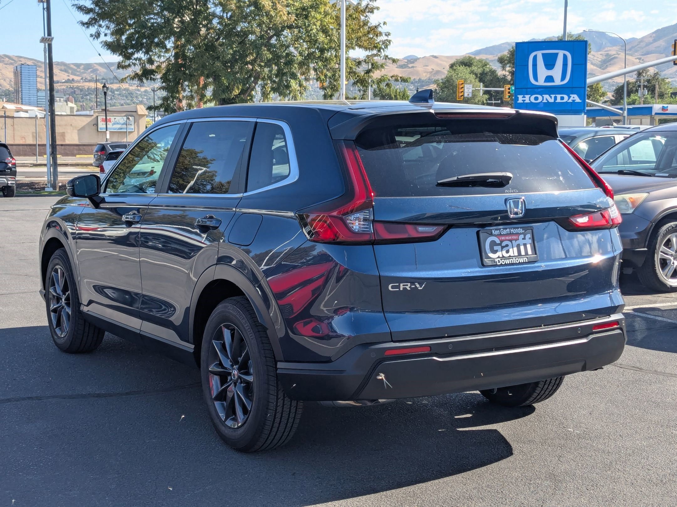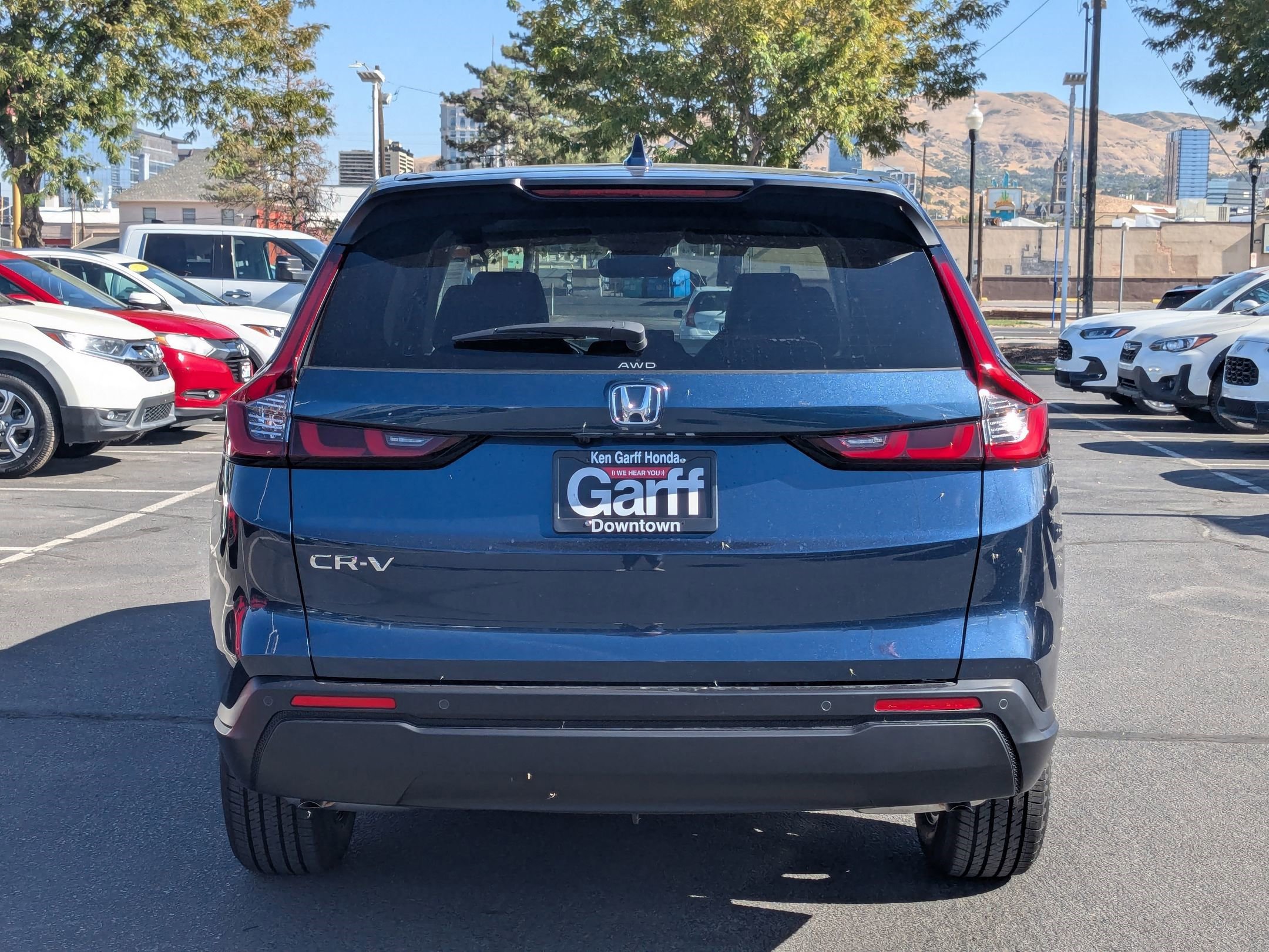 Ken Garff Honda is proud to offer this stunning 2026 Honda CR-V. EX-L AWD ALL Ken Garff Customers receive complimentary Garff Care!, Garff Care can jump a dead battery and will unlock your vehicle if you find yourself locked out, 4-Wheel Disc Brakes, 8 Speakers, ABS brakes, Adaptive Cruise Control: Adaptive Cruise Control (ACC) with Low-Speed Follow, Air Conditioning, Alloy wheels, AM/FM radio, Apple CarPlay/Android Auto, Auto High-beam Headlights, Auto-dimming Rear-View mirror, Automatic temperature control, Blind Spot Information (BSI) System warning, Brake assist, Bumpers: body-color, Compass, Delay-off headlights, Driver door bin, Driver vanity mirror, Dual front impact airbags, Dual front side impact airbags, Electronic Stability Control, Exterior Parking Camera Rear, Four wheel independent suspension, Front anti-roll bar, Front Bucket Seats, Front Center Armrest, Front dual zone A/C, Front reading lights, Fully automatic headlights, Heated door mirrors, Heated Front Bucket Seats, Heated front seats, Illuminated entry, Knee airbag, Leather Seat Trim, Leather Shift Knob, Leather steering wheel, Low tire pressure warning, Memory seat, Occupant sensing airbag, Outside temperature display, Overhead airbag, Overhead console, Panic alarm, Passenger door bin, Passenger vanity mirror, Power door mirrors, Power driver seat, Power Liftgate, Power moonroof, Power passenger seat, Power steering, Power windows, Radio data system, Radio: 320-Watt AM/FM Audio System, Rear anti-roll bar, Rear reading lights, Rear seat center armrest, Rear side impact airbag, Rear window defroster, Rear window wiper, Remote keyless entry, Security system, Speed control, Speed-sensing steering, Speed-Sensitive Wipers, Split folding rear seat, Spoiler, Steering wheel mounted audio controls, Tachometer, Telescoping steering wheel, Tilt steering wheel, Traction control, Trip computer, Turn signal indicator mirrors, Variably intermittent wipers, Wheels: 18 Shark Grey. 27/31 City/Highway MPG Fuel Economy estimates are based on EPA mileage ratings. Actual mileage will vary depending on driving conditions, habits, vehicle maintenance, and other factors. Advertised Prices do not include any dealer installed options and advertised prices exclude leases.