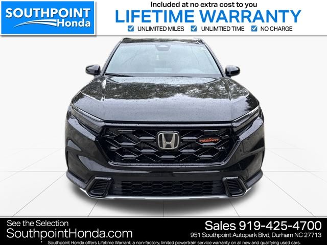 We are pleased to present this CR-V Hybrid TrailSport which includes the following features: 2.0L I4 DOHC 16V, 4-Wheel Disc Brakes, 8 Speakers, ABS brakes, Adaptive Cruise Control: Adaptive Cruise Control (ACC) with Low-Speed Follow, Air Conditioning, Alloy wheels, Apple CarPlay/Android Auto, Auto High-beam Headlights, Automatic temperature control, Blind Spot Information (BSI) System warning, Brake assist, Bumpers: body-color, Cloth Seat Trim, Compass, Delay-off headlights, Driver door bin, Driver vanity mirror, Dual front impact airbags, Dual front side impact airbags, Electronic Stability Control, Exterior Parking Camera Rear, Four wheel independent suspension, Front anti-roll bar, Front Bucket Seats, Front Center Armrest, Front dual zone A/C, Front reading lights, Fully automatic headlights, Heated door mirrors, Heated Front Bucket Seats, Heated front seats, Heated steering wheel, Illuminated entry, Knee airbag, Leather Shift Knob, Leather steering wheel, Low tire pressure warning, Occupant sensing airbag, Outside temperature display, Overhead airbag, Overhead console, Panic alarm, Passenger door bin, Passenger vanity mirror, Power door mirrors, Power driver seat, Power moonroof, Power steering, Power windows, Radio data system, Radio: 320-Watt AM/FM Audio System, Rear anti-roll bar, Rear reading lights, Rear seat center armrest, Rear side impact airbag, Rear window defroster, Rear window wiper, Remote keyless entry, Security system, Speed control, Speed-sensing steering, Speed-Sensitive Wipers, Split folding rear seat, Spoiler, Steering wheel mounted audio controls, Telescoping steering wheel, Tilt steering wheel, Traction control, Trip computer, Turn signal indicator mirrors, Variably intermittent wipers, and Wheels: 18" Shark Gray. Southpoint Honda: Durham's Premier Automotive Resource Serving Apex, The Downs, Chapel Hill, and Raleigh At Southpoint Honda, we understand that buying a car is more than just a transaction. Our team is dedicated to guiding you through every step of your automotive journey, from selecting the perfect new or used Honda to maintaining your vehicle with expert service and genuine OEM parts. We're committed to helping you achieve your automotive dreams. Why Choose Southpoint Honda? Drivers from Apex, The Downs, Chapel Hill, and Raleigh consistently choose Southpoint Honda for our exceptional service. Whether you need assistance with sales, service, parts, or financing, our team is here to provide high-quality, modern support. Our in-house finance experts are ready to help you find the best auto loans, leasing deals, and finance packages to meet your needs. We aim to make your experience simple and convenient, whether you're buying, trading in, or getting your vehicle repaired. Visit Us in Durham Experience the unique Southpoint Honda customer service in person. Make the trip from Apex, The Downs, Chapel Hill, or Raleigh to our Durham location and discover how enjoyable car shopping and ownership can be with a professional dealership by your side. We're here to answer all your questions and assist with all your vehicle needs.
