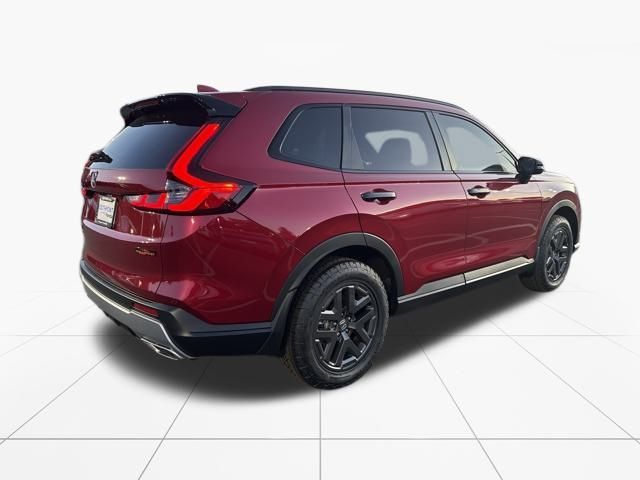 Radiant Red Metallic 2026 Honda CR-V Hybrid TrailSport AWD eCVT 2.0L I4 DOHC 16V 2.0L I4 DOHC 16V. We are pleased to present this CR-V Hybrid TrailSport which includes the following features: 2.0L I4 DOHC 16V, 4-Wheel Disc Brakes, 8 Speakers, ABS brakes, Adaptive Cruise Control: Adaptive Cruise Control (ACC) with Low-Speed Follow, Air Conditioning, Alloy wheels, Apple CarPlay/Android Auto, Auto High-beam Headlights, Automatic temperature control, Blind Spot Information (BSI) System warning, Brake assist, Bumpers: body-color, Cloth Seat Trim, Compass, Delay-off headlights, Driver door bin, Driver vanity mirror, Dual front impact airbags, Dual front side impact airbags, Electronic Stability Control, Exterior Parking Camera Rear, Four wheel independent suspension, Front anti-roll bar, Front Bucket Seats, Front Center Armrest, Front dual zone A/C, Front reading lights, Fully automatic headlights, Heated door mirrors, Heated Front Bucket Seats, Heated front seats, Heated steering wheel, Illuminated entry, Knee airbag, Leather Shift Knob, Leather steering wheel, Low tire pressure warning, Occupant sensing airbag, Outside temperature display, Overhead airbag, Overhead console, Panic alarm, Passenger door bin, Passenger vanity mirror, Power door mirrors, Power driver seat, Power moonroof, Power steering, Power windows, Radio data system, Radio: 320-Watt AM/FM Audio System, Rear anti-roll bar, Rear reading lights, Rear seat center armrest, Rear side impact airbag, Rear window defroster, Rear window wiper, Remote keyless entry, Security system, Speed control, Speed-sensing steering, Speed-Sensitive Wipers, Split folding rear seat, Spoiler, Steering wheel mounted audio controls, Telescoping steering wheel, Tilt steering wheel, Traction control, Trip computer, Turn signal indicator mirrors, Variably intermittent wipers, and Wheels: 18" Shark Gray.