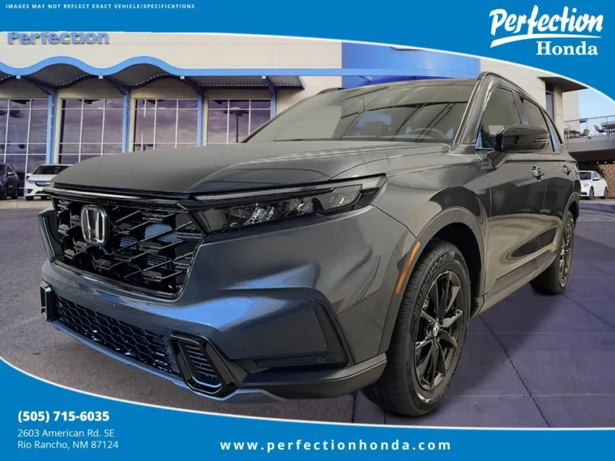 The 2026 Honda CR-V Hybrid Sport-L offers a blend of efficiency and comfort, with a combined fuel economy of 37 mpg and seating for up to 5 passengers. Its Meteorite Gray Metallic exterior and black interior create a modern look, while features like leather upholstery, power moonroof, and Apple CarPlay/Android Auto integration enhance the driving experience. The vehicle is equipped with advanced safety and convenience technologies, making it a practical choice for families and hybrid enthusiasts.