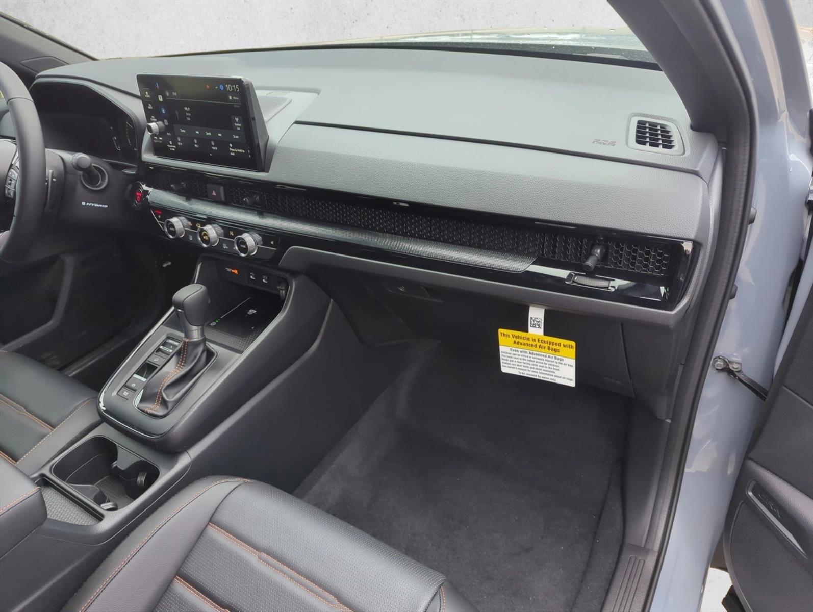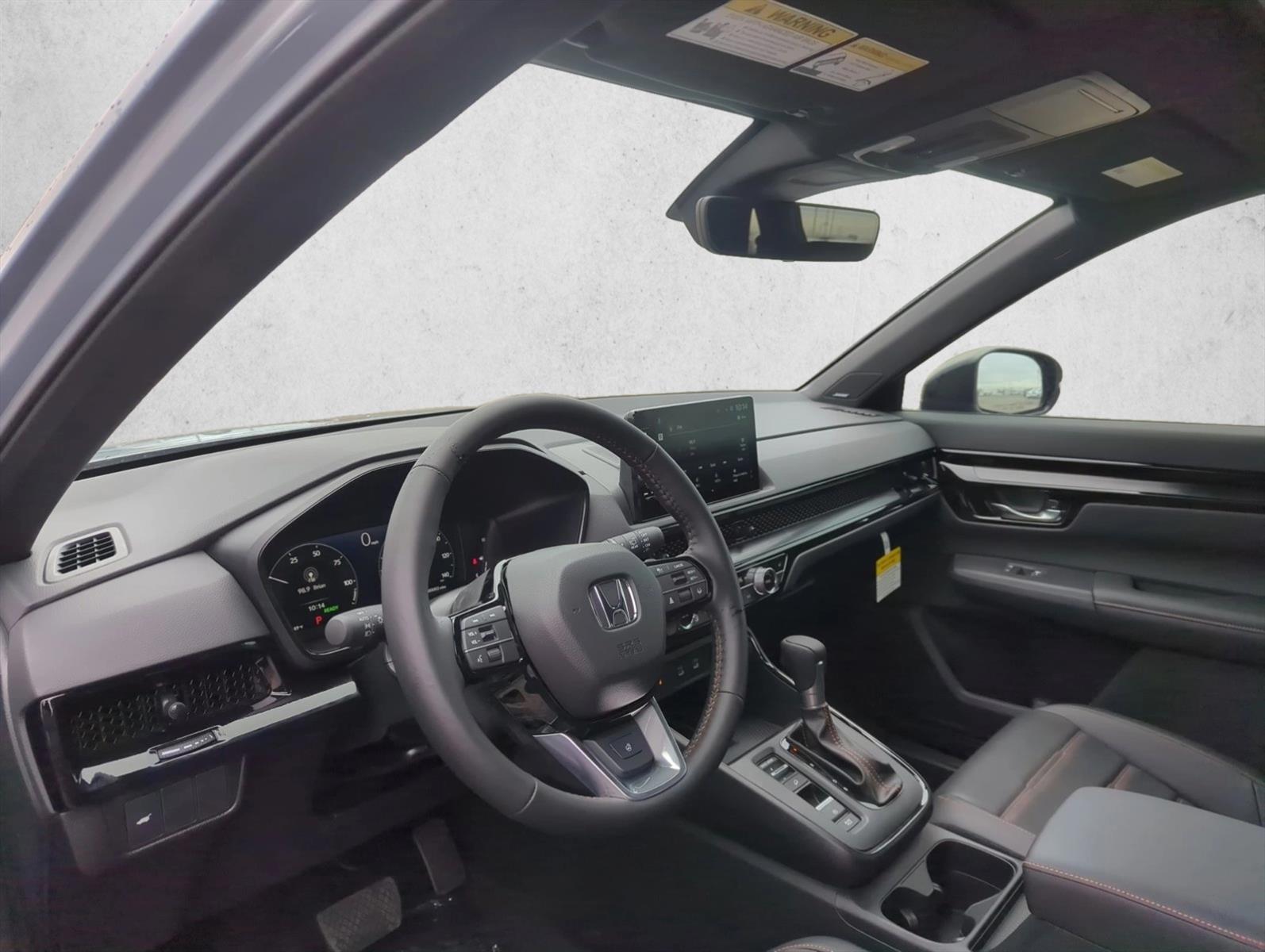 Moonroof, Leather Seats, Navigation System, Urban Gray Pearl, Lane Keeping Assist, Keyless Start, Rear Spoiler, Black; Leather Seat Trim. This is my second CRV and I could not love it more. I love the hybrid version, it gets phenomenal gas mileage, and is very comfortable, even for long road trips. I am a Honda driver for life, with this being my third Honda purchase. The best part about this car is its drivetrain compared to others in its class. The 2L engine is never loud and the car smoothly transitions in and out of electric-only mode. The e-CVT is responsive to throttle and is relatively quick to accelerate when you need the power. The safety features are not intrusive. The adaptive cruise control and the lane-centering features work nicely, even in traffic. The emergency braking system works well and can be adjusted. Another pro is that it's super spacious. It fits huge Costco runs and the back seats have great legroom. The front seats could be more comfortable, though. I find the aggressive bolstering digs into my thighs. I'm not even a big guy and it's still noticeable on long trips. This type of bolstering is better suited for a sporty car, rather than a family hauler. The interior is inoffensive and practical. The buttons and dials are accessible and easy to use. The auto-dimming rearview mirror is a life saver. The AC works well but sometimes you have to lower it a couple of degrees because it leans towards efficiency. Glitches with the infotainment have been due to issues with Android Auto, rather than the Honda software.