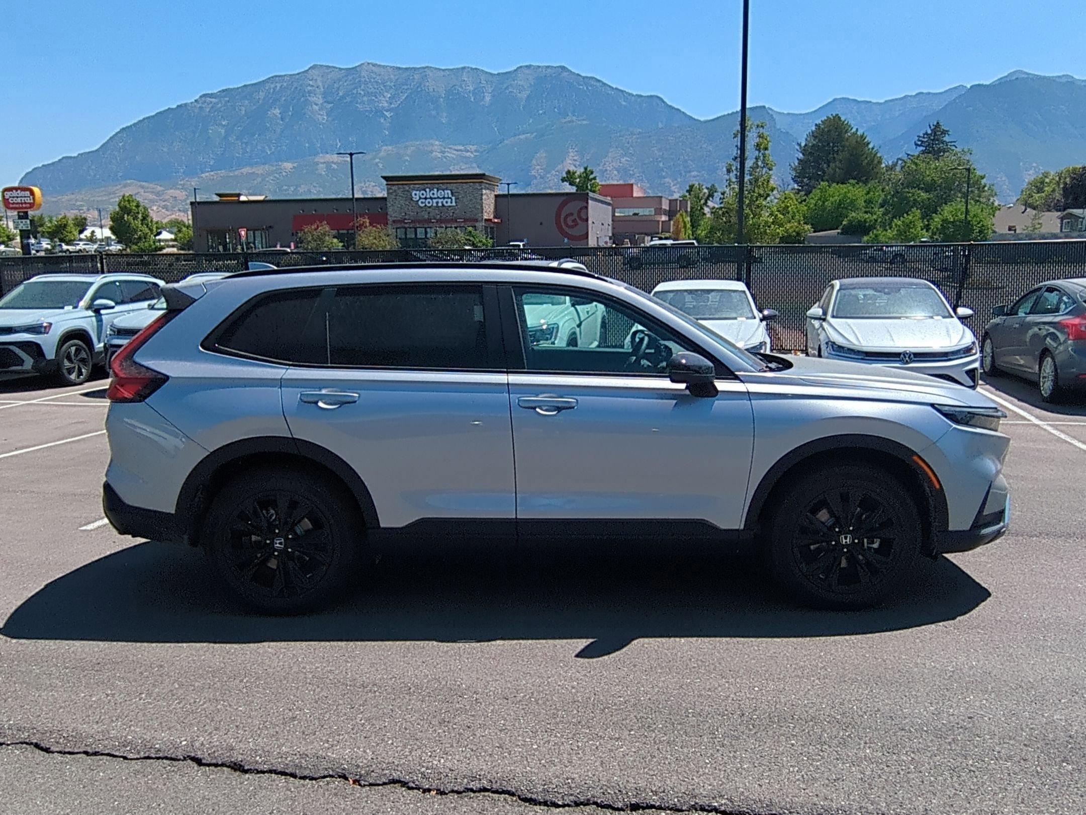 Ken Garff Honda is proud to offer this superb-looking 2026 Honda CR-V Hybrid Sport Touring in Solar Silver Metallic. AWD Sport Sport High Tide, 12 Speakers, 4-Wheel Disc Brakes, Adaptive Cruise Control with Low-Speed Follow, Air Conditioning, Alloy Wheels, Apple CarPlay/Android Auto, Auto High-beam Headlights, Auto-dimming Rear-View Mirror, Automatic Temperature Control, Blind Spot Information System warning, Bose Premium Sound System, Brake Assist, Bumpers: body-color, Compass, Delay-off Headlights, Driver door bin, Driver Vanity Mirror, Dual front impact airbags, Dual front side impact airbags, Electronic Stability Control, Exterior Parking Camera Rear, Four wheel independent suspension, Front anti-roll bar, Front Bucket Seats, Front Center Armrest, Front dual zone A/C, Front reading lights, Fully automatic headlights, Heated door mirrors, Heated Front Bucket Seats, Heated front seats, Heated steering wheel, Illuminated entry, Knee airbag, Leather Seat Trim, Leather Shift Knob, Leather steering wheel, Low tire pressure warning, Memory seat, Navigation system: Google Maps, Occupant sensing airbag, Outside temperature display, Overhead airbag, Overhead console, Panic alarm, Passenger door bin, Passenger vanity mirror, Power door mirrors, Power driver seat, Power Liftgate, Power moonroof, Power passenger seat, Power steering, Power windows, Radio data system, Rain sensing wipers, Rear anti-roll bar, Rear reading lights, Rear seat center armrest, Rear side impact airbag, Rear window defroster, Rear window wiper.