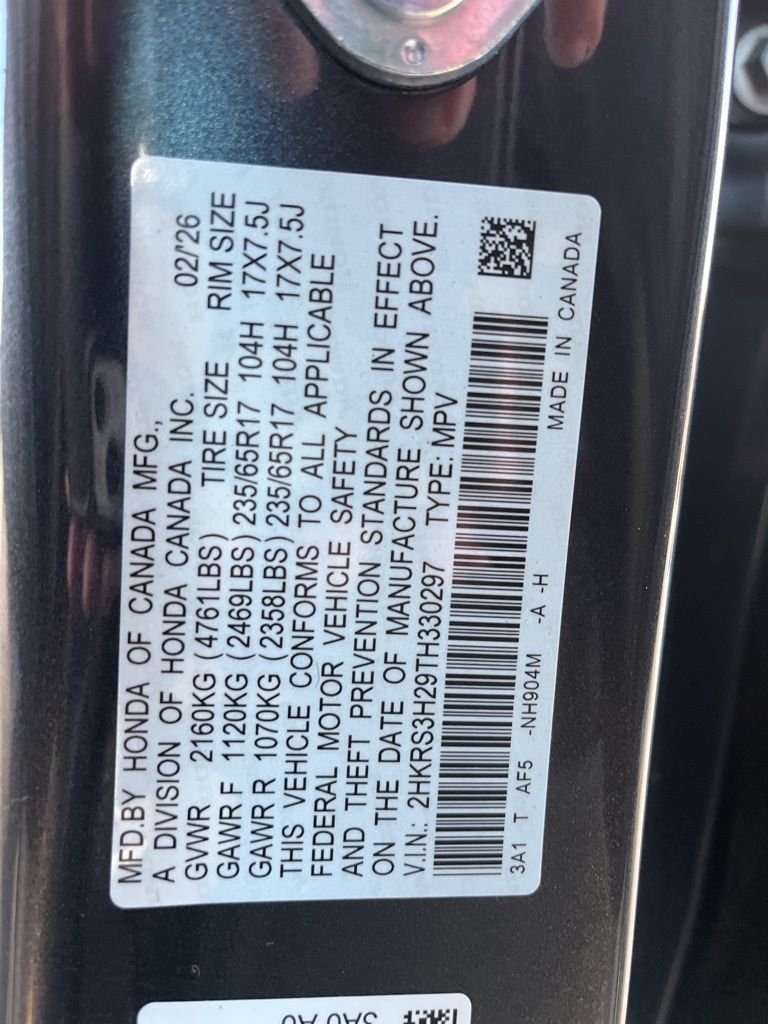 VIN: 2HKRS3H29TH330297