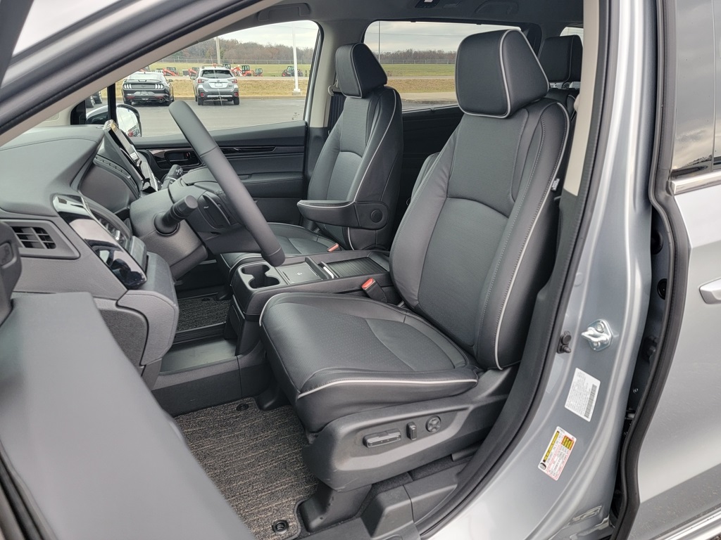 Solar Silver Metallic 2026 Honda Odyssey Elite, Black w/Perforated Leather-Trimmed Seats w/Piping. Apple CarPlay/Android Auto, Blind Spot Information (BSI) System warning, Front dual zone A/C, Fully automatic headlights, Heated & Ventilated Front Bucket Seats, Heated door mirrors, Heated steering wheel, Memory seat, Navigation System, Power Liftgate, Power moonroof, Rain sensing wipers, Remote keyless entry.