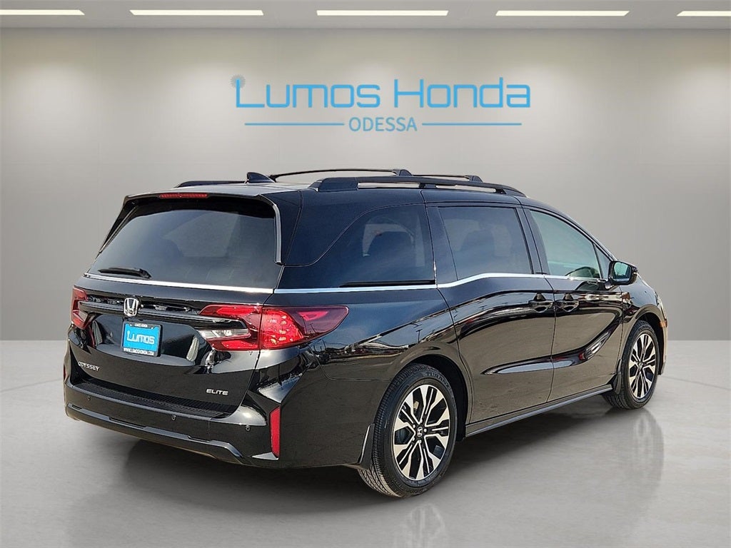 Recent Arrival! 2026 Black Honda Odyssey Elite 4D Passenger Van FWD 10-Speed Automatic 3.5L V6 SOHC i-VTEC 24V. May not represent actual vehicle. All discounts are after qualifying Honda incentives on current selections. Prices of the vehicles on this website does not include options and/or accessories that have been installed at the dealership, which will be an additional cost. Additional costs, tax, tags, processing fee, and destination charges are not included in the prices shown and may be applicable by law. All prices, specifications, and availability to change without notice. All prices and discounts are in stock units only. Please see Dealer for all details. While great effort is made to ensure the accuracy of the information on this website and each listing, the dealership is not responsible for typographical errors. Please contact your internet sales manager for current information. You can also obtain current information by giving the dealership a call at (432)334-6632 or, by visiting us in person at 5301 John Ben Shepperd Parkway, Odessa, TX 79762. Thank you! We look forward to welcoming you to the Lumos Honda Family.