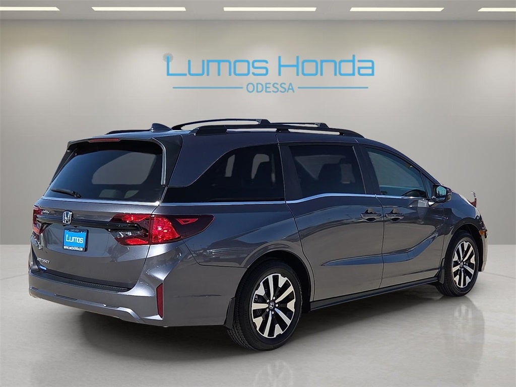 Recent Arrival! 2026 Modern Steel Metallic Honda Odyssey EX-L 4D Passenger Van FWD 10-Speed Automatic 3.5L V6 SOHC i-VTEC 24V. May not represent actual vehicle. All discounts are after qualifying Honda incentives on current selections. Prices of the vehicles on this website does not include options and/or accessories that have been installed at the dealership, which will be an additional cost. Additional costs, tax, tags, processing fee, and destination charges are not included in the prices shown and may be applicable by law. All prices, specifications, and availability to change without notice. All prices and discounts are in stock units only. Please see Dealer for all details. While great effort is made to ensure the accuracy of the information on this website and each listing, the dealership is not responsible for typographical errors. Please contact your internet sales manager for current information. You can also obtain current information by giving the dealership a call at (432)334-6632 or, by visiting us in person at 5301 John Ben Shepperd Parkway, Odessa, TX 79762. Thank you! We look forward to welcoming you to the Lumos Honda Family.