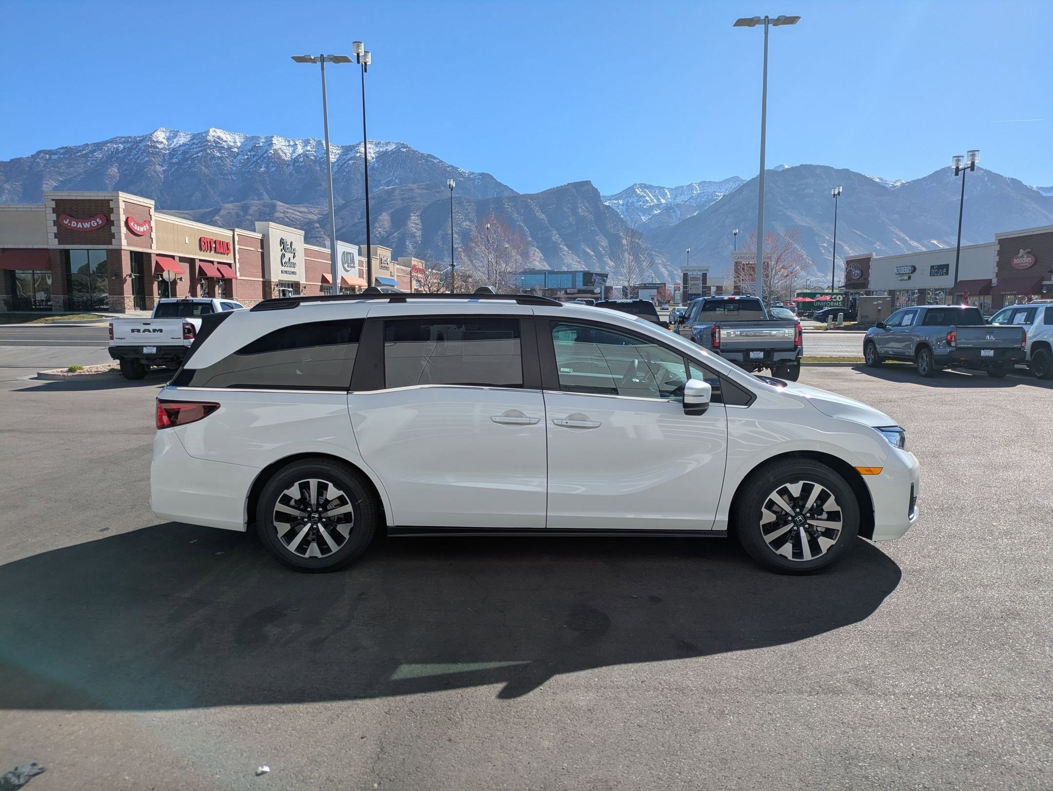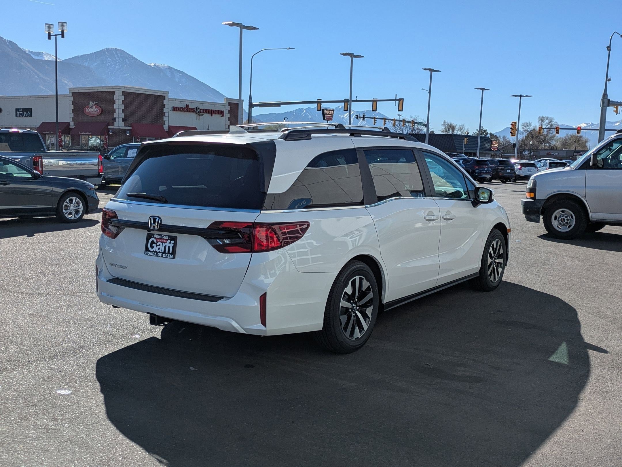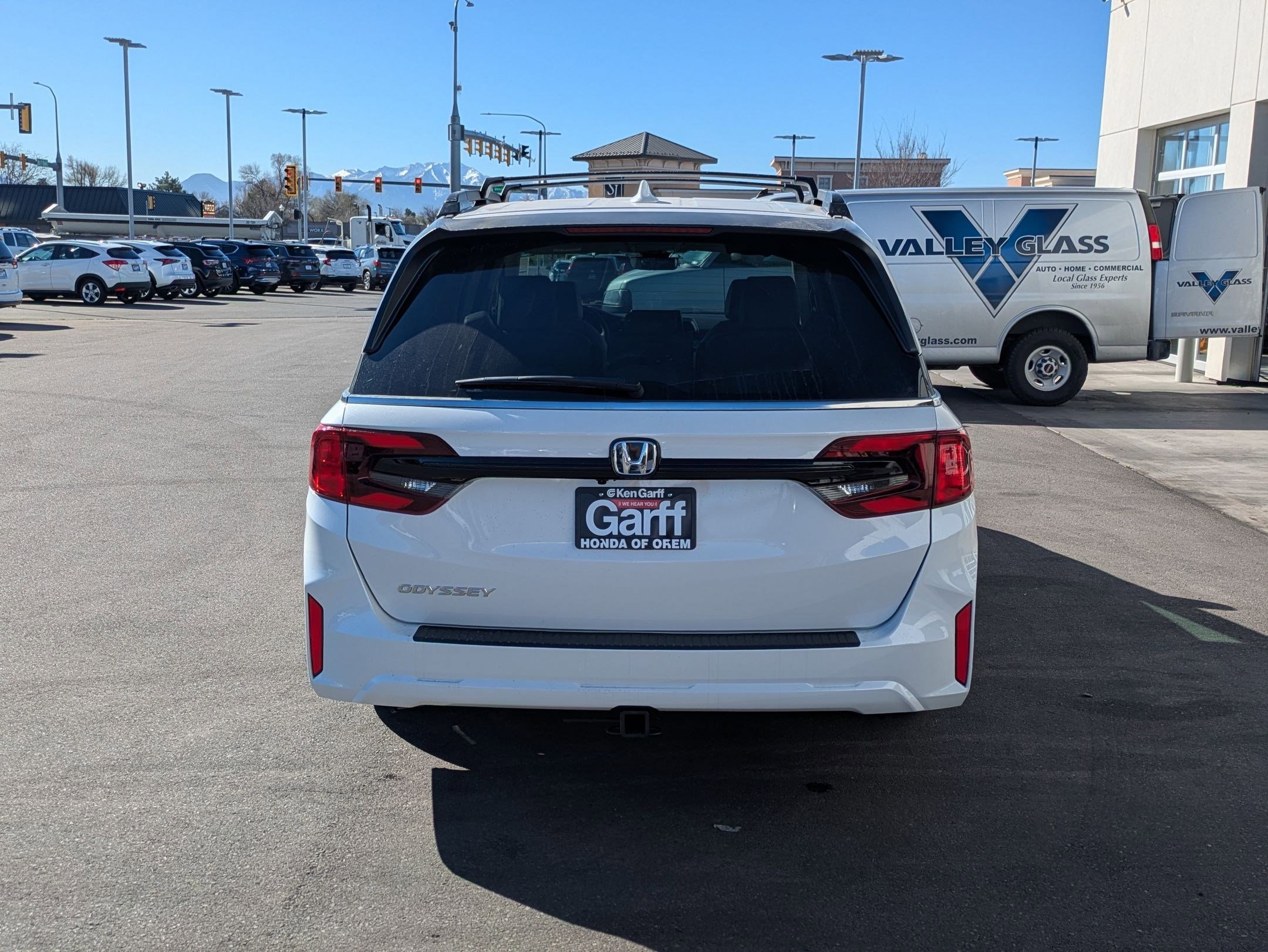Ken Garff Honda is delighted to offer this charming 2026 Honda Odyssey EX-L in Platinum White Pearl. FWD EX-L 10-Speed Automatic18 Machine-Finished Alloy Wheels, 3rd row seats: split-bench, 4-Wheel Disc Brakes, 7 Speakers, ABS brakes, Adaptive Cruise Control: Adaptive Cruise Control (ACC) with Low-Speed Follow, Air Conditioning, Alloy wheels, AM/FM radio: SiriusXM, Anti-whiplash front head restraints, Apple CarPlay/Android Auto, Auto High-beam Headlights, Auto-dimming Rear-View mirror, Automatic temperature control, Blind Spot Information (BSI) System warning, Brake assist, Bumpers: body-color, Delay-off headlights, Driver door bin, Driver vanity mirror, Driver's Seat Mounted Armrest, Dual front impact airbags, Dual front side impact airbags, Electronic Stability Control, Exterior Parking Camera Rear, Four wheel independent suspension, Front anti-roll bar, Front Bucket Seats, Front dual zone A/C, Front fog lights, Front reading lights, Fully automatic headlights, Garage door transmitter: HomeLink, Heated door mirrors, Heated Front Bucket Seats, Heated front seats, Illuminated entry, Knee airbag, Lane departure: Lane Keeping Assist System (LKAS) active, Leather steering wheel, Leather-Trimmed Seats, Low tire pressure warning, Memory seat, Occupant sensing airbag, Outside temperature display, Overhead airbag, Overhead console, Panic alarm, Passenger door bin, Passenger seat mounted armrest, Passenger vanity mirror, Power door mirrors, Power driver seat, Power Liftgate, Power moonroof, Power passenger seat, Power steering, Power windows, Radio data system, Radio: 160-Watt AM/FM/HD/SiriusXM Audio System, Rear air conditioning, Rear anti-roll bar, Rear reading lights, Rear seat center armrest, Rear window defroster, Rear window wiper, Reclining 3rd row seat, Remote keyless entry, Security system, Speed control, Speed-sensing steering, Speed-Sensitive Wipers, Split folding rear seat, Spoiler, Steering wheel mounted audio controls, Tachometer, Telescoping steering wheel, Tilt steering wheel, Traction control, Trip computer, Turn signal indicator mirrors.