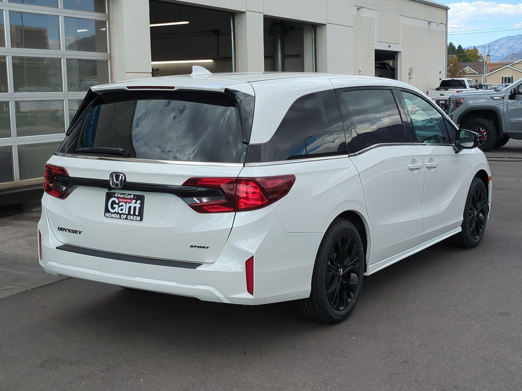 Ken Garff Honda is pumped up to offer this handsome 2026 Honda Odyssey Sport-L in Platinum White Pearl. FWD Sport-L 10-Speed Automatic 3rd row seats: split-bench, 4-Wheel Disc Brakes, 7 Speakers, ABS brakes, Adaptive Cruise Control with Low-Speed Follow, Air Conditioning, Alloy wheels, AM/FM radio: SiriusXM, Anti-whiplash front head restraints, Apple CarPlay/Android Auto, Auto High-beam Headlights, Auto-dimming Rear-View mirror, Automatic temperature control, Blind Spot Information System warning, Brake assist, Bumpers: body-color, Delay-off headlights, Driver door bin, Driver vanity mirror, Driver's Seat Mounted Armrest, Dual front impact airbags, Dual front side impact airbags, Electronic Stability Control, Exterior Parking Camera Rear, Four wheel independent suspension, Front anti-roll bar, Front Bucket Seats, Front dual zone A/C, Front fog lights, Front reading lights, Fully automatic headlights, Garage door transmitter: HomeLink, Heated door mirrors, Heated Front Bucket Seats, Heated front seats, Illuminated entry, Knee airbag, Lane departure: Lane Keeping Assist System active, Leather steering wheel, Leather-Trimmed Seats, Low tire pressure warning, Memory seat, Occupant sensing airbag, Outside temperature display, Overhead airbag, Overhead console, Panic alarm, Passenger door bin, Passenger seat mounted armrest, Passenger vanity mirror, Power door mirrors, Power driver seat, Power Liftgate, Power moonroof, Power passenger seat, Power steering, Power windows, Radio data system, Radio: 160-Watt AM/FM/HD/SiriusXM Audio System, Rear air conditioning, Rear anti-roll bar, Rear reading lights, Rear seat center armrest, Rear window defroster, Rear window wiper, Reclining 3rd row seat, Remote keyless entry, Security system, Speed control, Speed-sensing steering, Speed-Sensitive Wipers, Split folding rear seat, Spoiler, Steering wheel mounted audio controls, Tachometer, Telescoping steering wheel, Tilt steering wheel, Traction control, Trip computer, Turn signal indicator mirrors, Variably intermittent wipers, Wheels: 19 Gloss Black Alloy. Fuel Economy estimates are based on EPA mileage ratings. Actual mileage will vary depending on driving conditions, habits, vehicle maintenance, and other factors. Advertised Prices do not include any dealer installed options and advertised prices exclude leases.