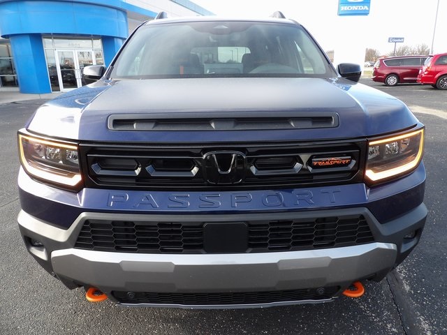 Obsidian Blue Pearl 2026 Honda Passport TrailSport AWD. This beautiful vehicle comes with two sets of keys, Honda Sensing: Adaptive Cruise Control (ACC), Collision Mitigation Braking System (CMBS), Lane Keeping Assist System (LKAS), Road Departure Mitigation (RDM), Traffic Sign Recognition System (TRS), Blind Spot Information System (BSI), Cross Traffic Monitor (CTM) and Traffic Jam Assist, 9 Speaker AM/FM/HD Audio System, Wireless Apple CarPlay/Android Auto, Google built-in Navigation, Wireless Phone Charger, Alexa Built-In, Heated Door Mirrors, Leather Wrapped Steering Wheel, Heated and Power Front Bucket Seats with Driver Memory, Durable Leatherette & Cloth Seat Trim, Integrated Class III Trailer Hitch, Power Liftgate, Panoramic Moonroof with Tilt and Slide Function. Post Production Options: HPD Package; Hood Decal, Rock Sliders, Front Skid Plate, HPD Center Caps, HPD Emblems, Function Package; Cargo Net, Cargo Cover, Door Sill Films. Black Emblems; Passport Insert, H-Mark Emblems. Recent Arrival!