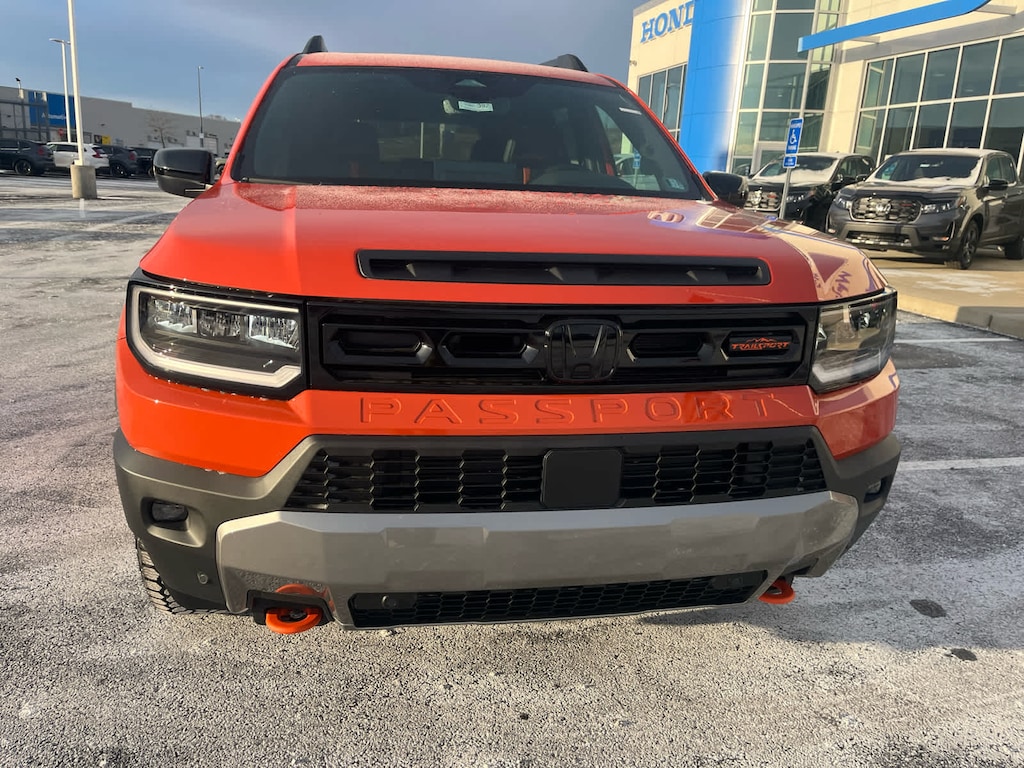 Navigation, Heated Seats, Trailer Hitch, Alloy Wheels, Moonroof, Back-Up Camera, AUX Input. FUEL EFFICIENT 23 MPG Hwy/18 MPG City! EXCELLENT SAFETY FOR YOUR FAMILY Blind Spot Monitor, Lane Keeping Assist, Cross-Traffic Alert, Child Safety Locks, Electronic Stability Control, Brake Assist, 4-Wheel ABS, 4-Wheel Disc Brakes Safety equipment includes Blind Spot Monitor Honda TrailSport Blackout with Sunset Orange exterior and Black interior features a V6 Cylinder Engine with 285 HP at 6100 RPM. GREAT GAS MILEAGE: 23 MPG Hwy. BUY FROM AN AWARD WINNING DEALER Factory certified Honda technicians. No appointment necessary! This ad could have errors so you must review the ad details and the actual vehicle. Check odometer at time of sale. Every vehicle has had paint or body repair. Ding removal and or touch up would make this statement true for every vehicle sold. 1 key for APR Offer 3.99% APR for 36 months on select 2026 Honda Passport. WRIGHT HONDA IS DEDICATED TO YOUR SATISFACTION BEFORE, DURING, AND AFTER YOUR PURCHASE. WE'LL GO THE EXTRA MILE TO TAKE CARE OF YOU.