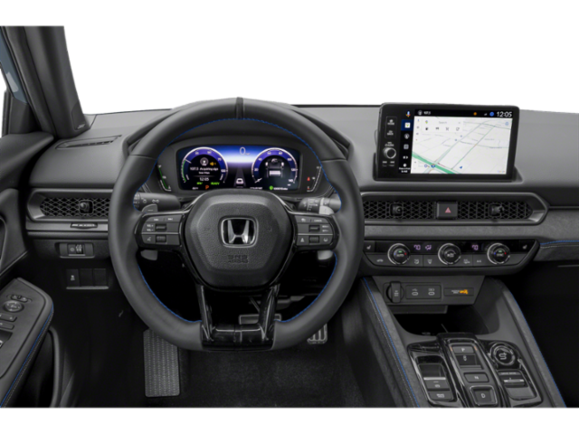 The 2026 Honda Prelude Hybrid is a new compact hatchback with a Boost Blue Pearl exterior and a black interior. It features a 2.0L 16V DOHC 4-Cyl Atkinson In-Line engine with a dual VTC, direct fuel injection, and remote engine start. The vehicle is equipped with a hybrid electric motor and a lithium ion traction battery. It offers a comfortable and sporty ride with heated front sport bucket seats, adaptive cruise control, and a range of advanced safety features.