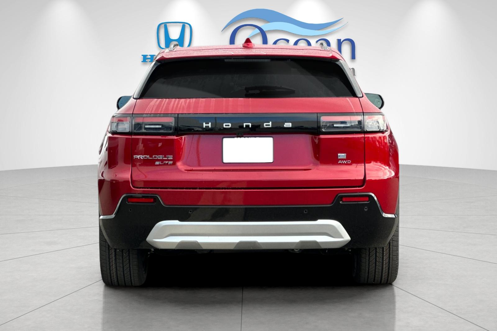The 2026 Honda Prologue Elite is a new, all-electric sport utility vehicle with a Scarlet Red Metallic exterior and a black interior. It features a 300hp ZEV engine, all-wheel drive, and a range of advanced technology and safety features. The Prologue Elite is covered by a 3-Year/36,000-Mile Limited Warranty and a 5-Year/60,000-Mile Powertrain Limited Warranty.